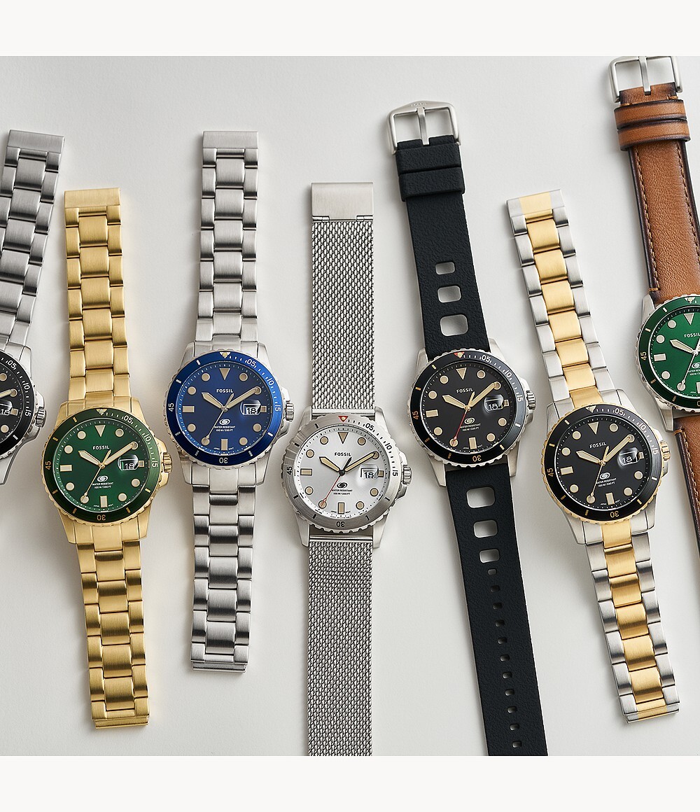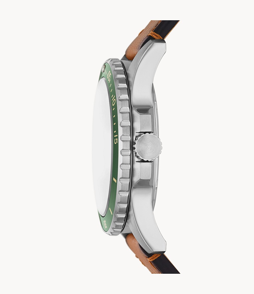 Мужские кварцевые наручные часы Fossil FS5942. Ремешок из эко-кожи. Стальной корпус. Водонепроницаемость 5WR. Минеральное стекло. Календарь. Люминисцентное покрытие стрелок.