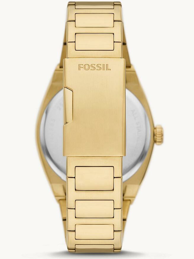 Мужские кварцевые аналоговые наручные часы. Коллекция Everett. Центральные часовая, минутная и секундная стрелки. Стрелки и метки с люминесцентным покрытием, которое светится в темноте после непродолжительной зарядки на свету. Золотистый циферблат с часовыми метками в виде штрихов. Окошко даты в позиции 6 часов. Круглый стальной корпус с покрытием цвета жёлтого золота. Диаметр корпуса 42 мм. Устойчивое к мелким механическим повреждениям минеральное стекло. Стальной браслет с покрытием цвкта жёлтого золота, раскладывающаяся застежка. Ширина браслета 18 мм. Водозащита 50WR (мытьё рук).