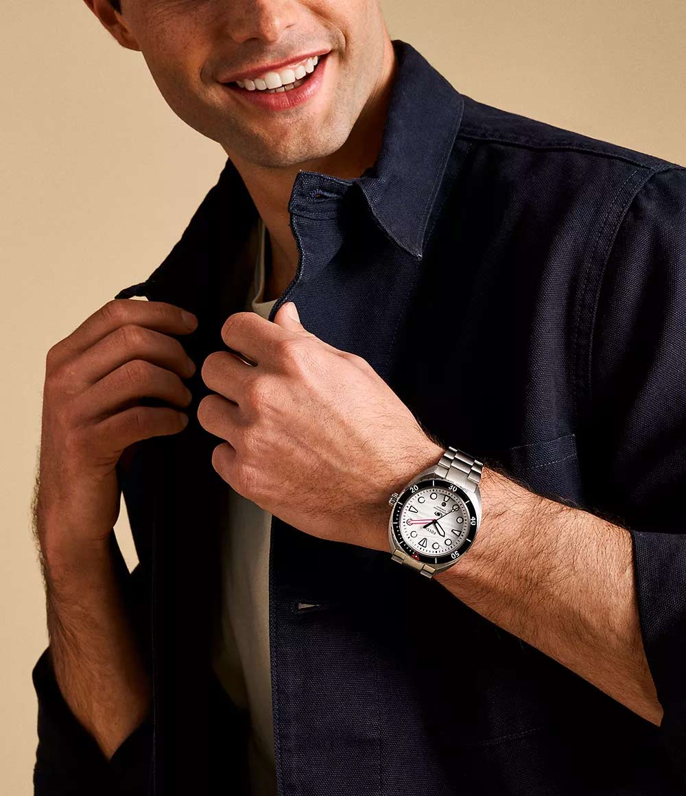 Мужские кварцевые аналоговые наручные часы. Коллекция Breaker. Центральные часовая, минутная и секундная стрелки. Белый циферблат с часовыми метками в виде точек и треугольников. Стрелки и метки с люминесцентным покрытием, которое светится в темноте после непродолжительного воздействия света. Окошко даты в положении 6 ч. Круглый стальной корпус диаметром 42 мм, толщиной 13 мм. Рифленая переводная головка. Рифленый безель с минутной шкалой. Устойчивое к мелким механическим повреждениям минеральное стекло. Стальной браслет с раскладывающейся застежкой. Водозащита 200WR (любительский дайвинг).