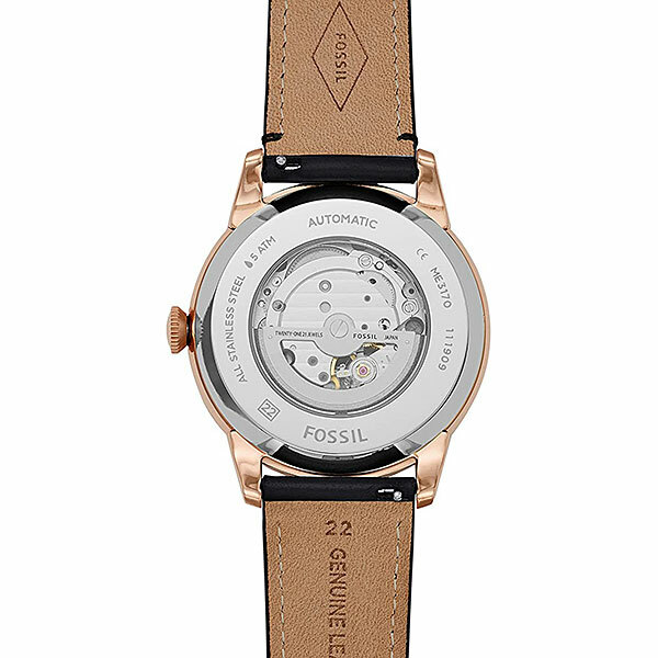 Мужские механические аналоговые часы с открытым балансом хода. Основное достоинство часов с автоподзаводом состоит в том, что их не надо ежедневно заводить, т. к. в таких часах пружина заводного барабана получает энергию от вращающегося эксцентрика (ротора), который приходит в движение при любом изменении положения механизма. Если носить такие часы каждый день, подводить их вручную не нужно. Коллекция Townsman Automatic. Центральные часовая и минутная стрелки. Секундная стрелка вынесена на отдельный малый циферблат в позиции между 4 и 5 ч. Дополнительно на малом циферблате в позиции 9 ч отображается текущее время в 24-х часовом формате. Чёрный циферблат с часовыми метками в виде штрихов и римских цифр. Сквозь прозрачное окошко на циферблате виден механизм часов. Круглый корпус из нержавеющей стали с покрытием цвета розового золота. Диаметр корпуса 44 мм. Устойчивое к мелким механическим повреждениям минеральное стекло. Прозрачная задняя крышка. Чёрный кожаный ремешок с классической застёжкой buckle. Ширина ремешка 22 мм. Водонепроницаемость 50 WR (мытьё рук).