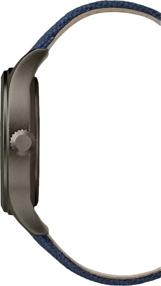 Мужские аналоговые кварцевые часы. Циферблат с подсветкой Indiglo (Indiglo -запатентованная технология компании Timex, представляющая собой электролюминесцентную панель нежно-зеленого или голубого цвета, с помощью которой подсвечивается весь циферблат). Центральные часовая, минутная и секундная стрелки. Апертура даты в позиции 3 часов. Синий циферблат. Люминесцентные стрелки. Арабская индикация времени. 12/24х часовой формат времени. Круглый корпус из нержавеющей стали с чёрным PVD покрытием. Диаметр корпуса 40 мм, толщина 11 мм. Синий текстильный ремешок на кожаной основе шириной 20 мм, стандартная застежка. Прочное минеральное стекло устойчивое к мелким механическим повреждениям. Водостойкость WR 50 (мытье рук, дождь).