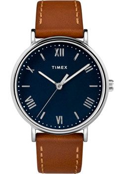 Кварцевые часы. Водостойкость WR 30. Центральные часовая, минутная и секундная стрелки. Синий циферблат с часовыми индексами в виде штрихов и цифр. Корпус выполнен из нержавеющей стали. Диаметр корпуса 41 мм, толщина 9 мм. Устойчивое к мелким механическим повреждениям минеральное стекло. Кожаный ремешок коричневого цвета. Стальная застежка.