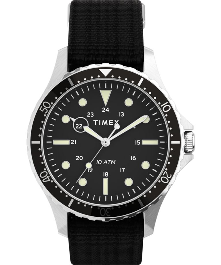 Мужские кварцевые аналоговые часы. Коллекция Navi XL. Центральные часовая, минутная и секундная стрелки. 12/24х часовой формат времени. Стрелки и метки с люминесцентным покрытием. Чёрный циферблат с часовыми индексами в виде штрихов и арабских цифр. Корпус выполнен из нержавеющей стали. Диаметр корпуса 41 мм. Устойчивое к возникновению мелких механических повреждений минеральное стекло. Переводная головка с защитой. Текстильный ремешок черного цвета с классической застежкой. Ширина ремешка 20 мм. Водостойкость WR 100 (плавание, погружение с маской и трубкой).