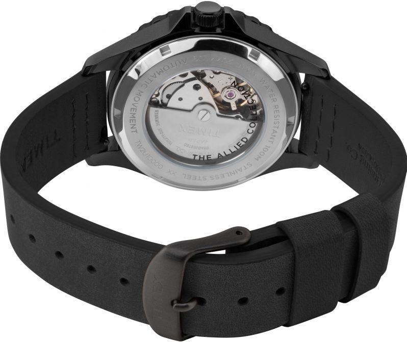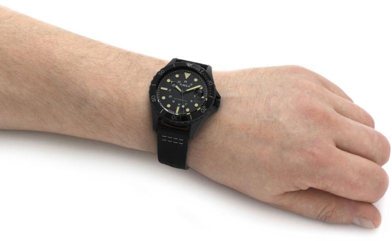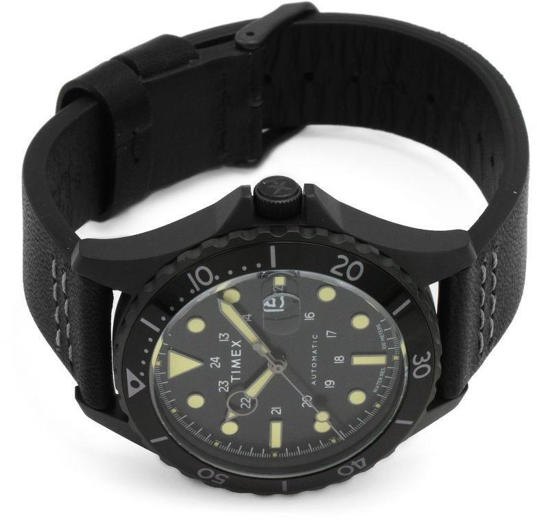Пол: муж; Размер корпуса (мм): 41 мм; Корпус: сталь; Цвет корпуса: черный; Ширина браслета (мм): 20 мм; Ремень/браслет: натуральная кожа; Цвет браслета: черный; Цвет циферблата: черный; Водозащита: 10 ATM; Доп. характеристики: механика с автоподзаводом, вращающийся безель, люминесцентные стрелки и маркеры