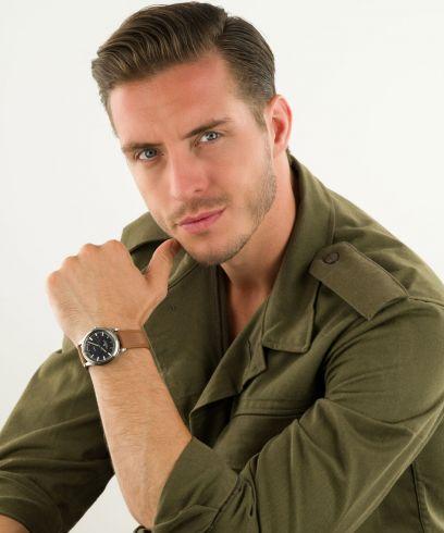 Пол: муж; Размер корпуса (мм): 39 мм; Корпус: сталь; Цвет корпуса: стальной; Ширина браслета (мм): 20 мм; Ремень/браслет: натуральная кожа; Цвет браслета: коричневый; Цвет циферблата: синий; Водозащита: 10 ATM; Доп. характеристики: механика с автоподзаводом, люминесцентные стрелки, быстросъемный ремешок