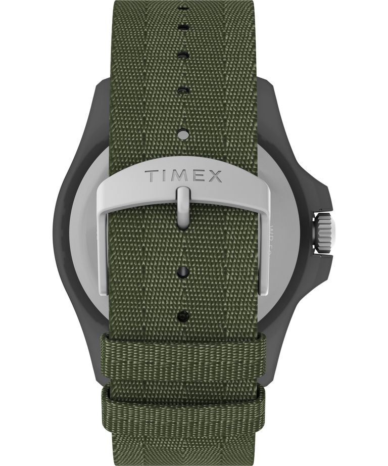 Мужские аналоговые кварцевые наручные часы на солнечной батарее. Коллекция Expedition North Freedive Ocean Центральные часовая, минутная и секундная стрелки. Зелёный циферблат с часовыми индексами в виде арабских цифр. Стрелки и метки с люминесцентным покрытием, которое светится в темноте после непродолжительной зарядки на свету. Устойчивое к мелким механическим повреждениям минеральное стекло. Круглый корпус диаметром 46 мм, толщиной 13 мм. Рифленая переводная головка с защитой. Стальная задняя крышка. Зелёный тканевый ремешок с классической застежкой. Ширина ремешка 22 мм. Водозащита 50 WR (мытьё рук, дождь).