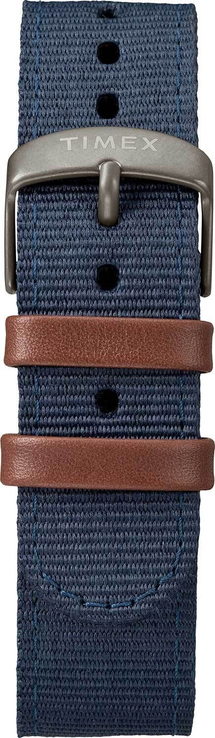 Мужские кварцевые аналоговые наручные часы. Коллекция Expedition Scout. Центральные часовая, минутная и секундная стрелки. Синий циферблат с часовыми метками в виде арабских цифр. 12-ти и 24-х часовой формат отображения времени. Окошко даты в позиции 3 ч. Циферблат с фирменной подсветкой Indiglo (запатентованная технология компании Timex, представляющая собой электролюминесцентную панель, с помощью которой подсвечивается весь циферблат). Стрелки с люминесцентным покрытием, которое светится в темноте после непродолжительного воздействия света. Круглый корпус из латуни с покрытием серого цвета. Диаметр корпуса 40 мм, толщина 11 мм. Устойчивое к мелким механическим повреждениям минеральное стекло. Рифленая переводная головка. Текстильный ремешок синего цвета с классической застёжкой buckle. Ширина ремешка 20 мм. Водозащита WR50 (мытьё рук, дождь).