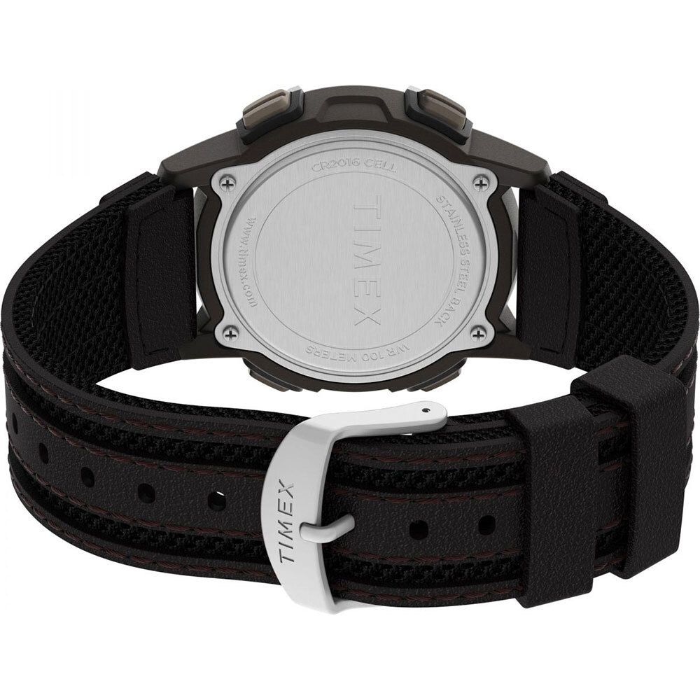 Мужские электронные часы. Люминесцентная подсветка INDIGLO. Автоматический календарь. 12/24х часовой формат времени. Будильник. Секундомер. Таймер. Черный ЖК дисплей. Корпус выполнен из нержавеющей стали с PVD покрытием и пластика. Ширина корпуса составляет 41 мм. Зеленый нейлоновый ремешок с кожаными вставками ремешок шириной 20 мм, стандартная застежка. Прочное минеральное стекло устойчивое к мелким механическим повреждениям. Водостойкость WR 100 (плавание без погружения).
