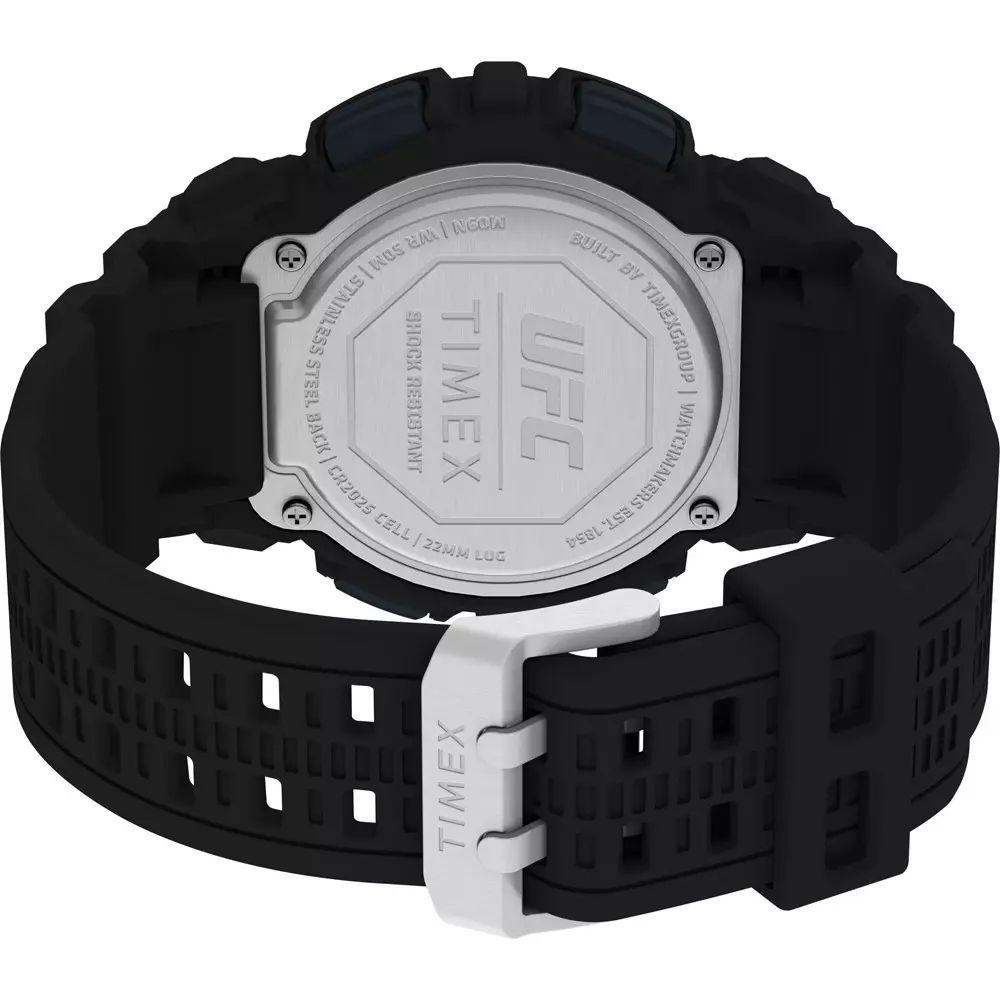 Мужские электронные кварцевые наручные часы. Коллекция UFC ELITE. Специальная серия часов в сотрудничестве со спортивной организацией UFC, под эгидой которой проводятся бои по смешанным единоборствам (также известные как ММА). Подсветка INDIGLO® - электролюминесцентная панель обеспечивает освещение всего циферблата. Функции: хронограф, таймер, секундомер, время 2-х часовых зон, будильник. Водостойкость 50 WR (мытьё рук, дождь).