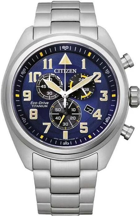 Японские наручные часы для мужчин, выполненные в стиле авиационных часов. Титановый корпус, сапфировое стекло. Кварцевый механизм Eco-Drive с функцией хронографа.