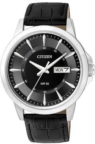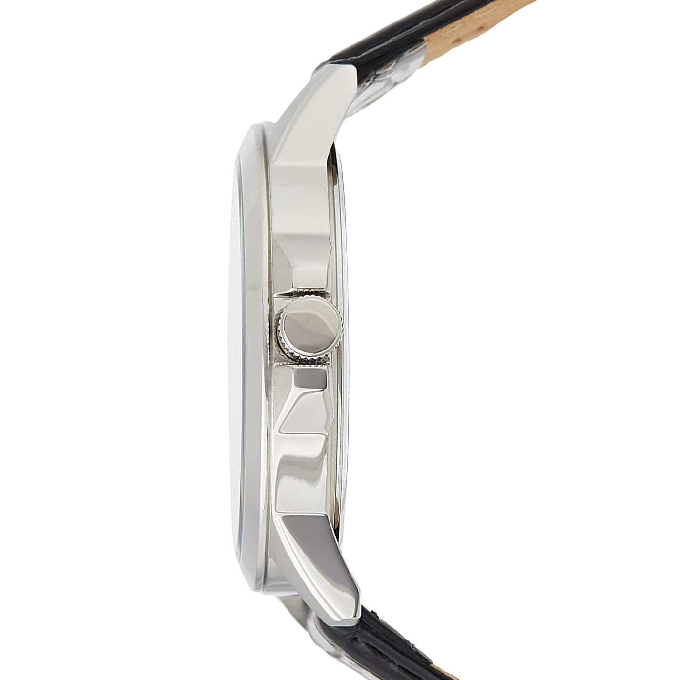 Мужские кварцевые наручные часы с аналоговым отображением времени. Коллекция Basic. Калибр механизма 1502. Центральные часовая, минутная и секундная стрелки. Чёрный циферблат с часовыми метками в виде штрихов. Индикация даты и дня недели в позиции 3 часов. Стрелки и часовые метки с люминесцентным покрытием, которое светится в темноте после непродолжительного воздействия света. Минутная шкала на циферблате. Круглый стальной корпус диаметром 41 мм, толщиной 9 мм. Устойчивое к мелким механическим повреждениям минеральное стекло. Переводная головка с защитой. Чёрный кожаный ремешок с классической застёжкой buckle. Ширина ремешка 20 мм. Водонепроницаемость 50WR (мытьё рук, дождь). Вес около 51 г.