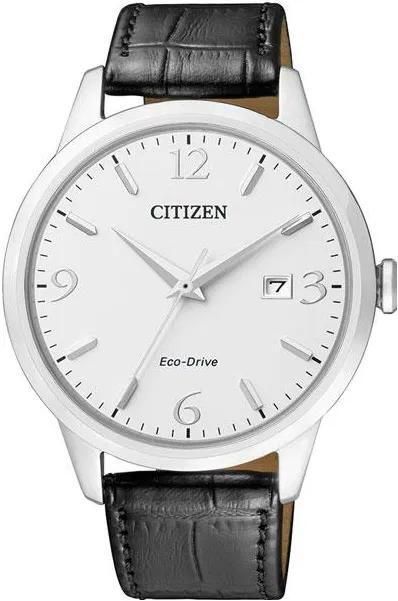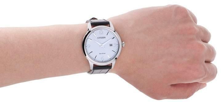Кварцевые часы. Калибр Е 111. 12 часовой формат времени. Индикатор числа. Система ECO-DRIVE. Питание от солнечной энергии, запас энергии на 180 дней. Функция индикации заряда (EOL) и предотвращения перезарядки. Корпус из нержавеющей стали. Сапфировое стекло. Кожаный ремень. Диаметр 40 мм.