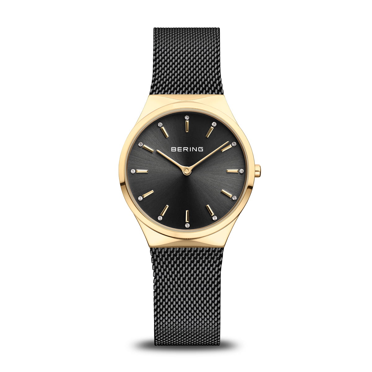 Элегантный подарочный набор, состоящий из наручных женских часов и браслета-змейки с шармом. Женские кварцевые наручные часы с аналоговым отображением времени (стрелочные). Серия Classic Collection. Безупречный стиль в сочетании с современным минимализмом. Механизм MIYOTA GL22. Центральные часовая и минутная стрелки золотистого цвета. Чёрный циферблат с часовыми метками в виде золотистых штрихов и кристаллов. Круглый стальной полированный корпус с IP покрытием цвета жёлтого золота. Диаметр корпуса 31 мм, толщина 6 мм. Устойчивое к возникновению мелких царапин плоское сапфировое стекло. Стальной браслет миланского плетения с чёрным IP покрытием. Ширина браслета 17 мм, длина браслета 185 мм. Раскладывающаяся застёжка с предохранительной защёлкой. Водонепроницаемость WR30 (защита от брызг). В комплект входит стальной браслет-змейка с чёрным IP покрытием с золотистым шармом в виде сердечка, украшенного кристаллом.