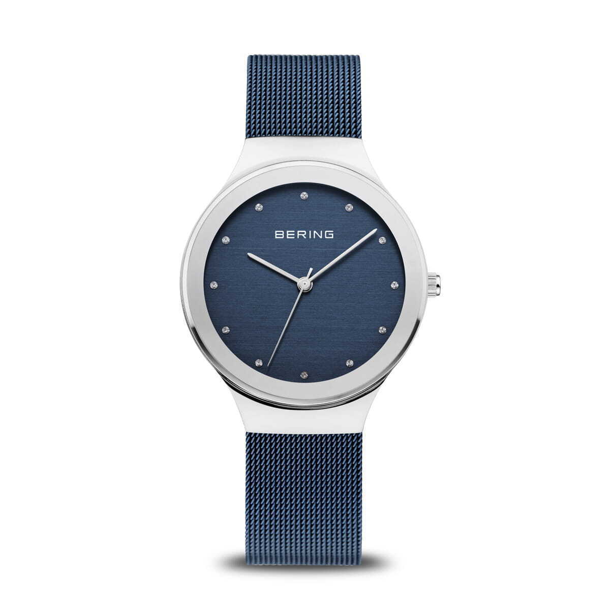 Женские кварцевые наручные часы с аналоговым отображением времени. Серия Classic Collection. Механизм Miyota GL32. Центральные часовая, минутная и секундная стрелки серебристого цвета. Синий циферблат с часовыми метками в виде кристаллов. Круглый стальной полированный корпус диаметром 34 мм, толщиной 7 мм. Устойчивое к возникновению мелких царапин плоское сапфировое стекло. Стальной браслет миланского плетения с синим IP покрытием. Ширина браслета 17 мм, длина браслета 165 мм. Регулируемая застежка с предохранительной защелкой. Водонепроницаемость WR30 (защита от брызг).