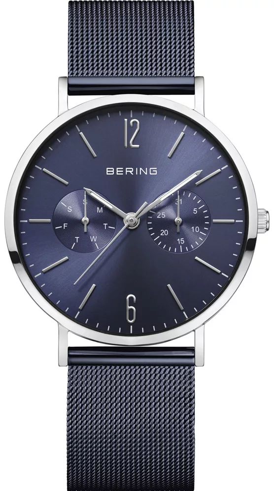 Кварцевые наручные часы с аналоговым отображением времени. Серия Classic Collection. Унисекс часы. Механизм SEIKO VX36E. Центральные часовая, минутная и секундная стрелки. Синий циферблат с часовыми метками в виде серебристых штрихов и двух арабских цифр 12 и 6. Стрелки с люминесцентным покрытием, которое светится в темноте после непродолжительного воздействия света. Дата и день недели вынесены на отдельные малые циферблаты (дата в позиции 3 часов, день недели в позиции 9 часов). Круглый стальной полированный корпус диаметром 36 мм, толщиной 8 мм. Устойчивое к возникновению мелких царапин плоское сапфировое стекло. Стальной браслет миланского плетения с IP покрытием синего цвета. Ширина браслета 18 мм. В комплект входит дополнительный сменный стальной браслет миланского плетения. Водонепроницаемость WR30 (защита от брызг)