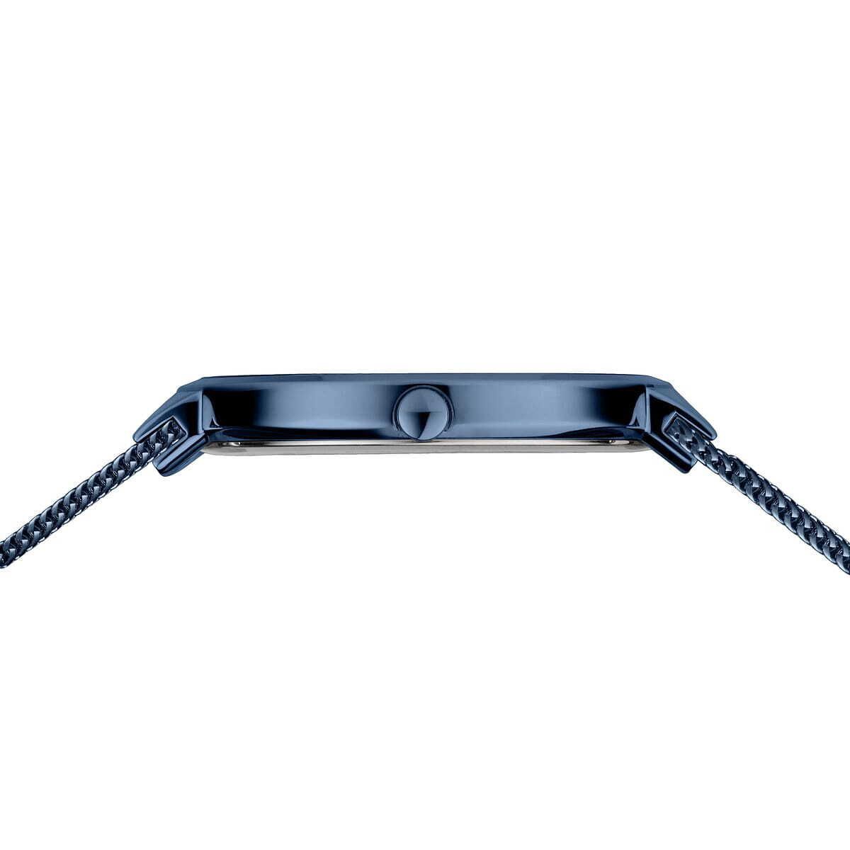 Кварцевые наручные часы с аналоговым отображением времени. Серия Classic Collection. Унисекс часы. Механизм Miyota 9T22. Центральные часовая и минутная стрелки. Синий циферблат. Круглый стальной полированный корпус с IP покрытием голубого цвета. Диаметр корпуса 39 мм, толщина 6 мм. Устойчивое к возникновению мелких царапин плоское сапфировое стекло. Стальной браслет миланского плетения с синим IP покрытием. Ширина браслета 18 мм, длина браслета 185 мм. Застежка с фиксатором Водонепроницаемость WR50 (мытьё рук, дождь).