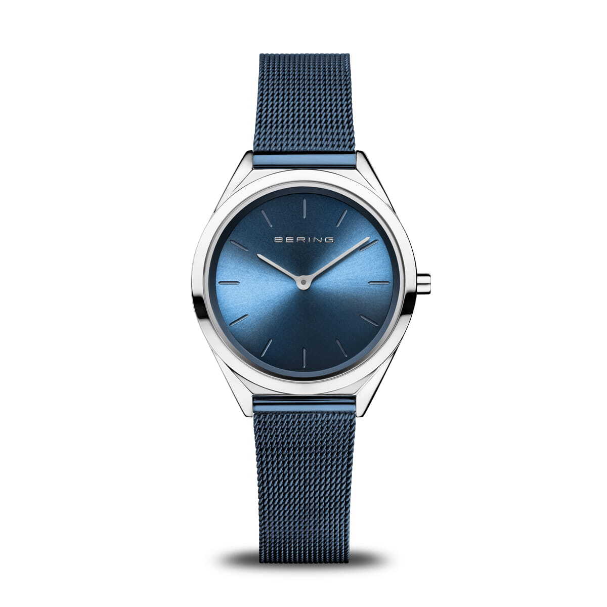 Женские кварцевые наручные часы с аналоговым отображением времени. Серия Classic Collection Ultra Slim 4.8. Благодаря толщине всего в несколько миллиметров, Ultra Slim являются одними из самых тонких часов Bering на сегодняшний день и одними из самых тонких часов на рынке. Механизм Miyota 9T22. Центральные часовая и минутная стрелки. Синий циферблат с часовыми метками в виде штрихов. Круглый стальной полированный корпус диаметром 31 мм, толщиной 5 мм. Устойчивое к возникновению мелких царапин плоское сапфировое стекло. Стальной браслет миланского плетения с синим IP покрытием. Ширина браслета 14 мм, регулируемая по длине застежка с предохранительной защелкой. Водонепроницаемость WR30 (защита от брызг).