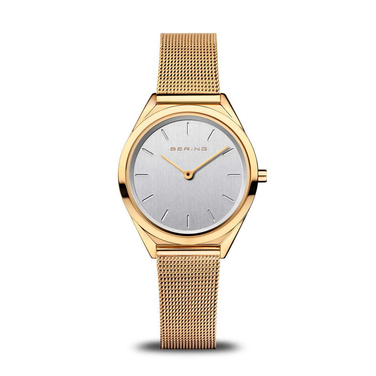 Женские кварцевые наручные часы с аналоговым отображением времени. Серия Classic Collection Ultra Slim 4,8. Благодаря толщине всего в несколько миллиметров, Ultra Slim являются одними из самых тонких часов Bering на сегодняшний день и одними из самых тонких часов на рынке. Механизм Miyota 9T22. Центральные часовая и минутная стрелки золотистого цвета. Серебристый циферблат с часовыми метками в виде штрихов. Круглый стальной полированный корпус с IP покрытием цвета розового золота. Диаметр корпуса 31 мм, толщина 5 мм. Устойчивое к возникновению мелких царапин плоское сапфировое стекло. Стальной браслет миланского плетения с IP покрытием цвета розового золота. Ширина браслета 14 мм, длина браслета 180 мм. Водонепроницаемость WR30 (защита от брызг).