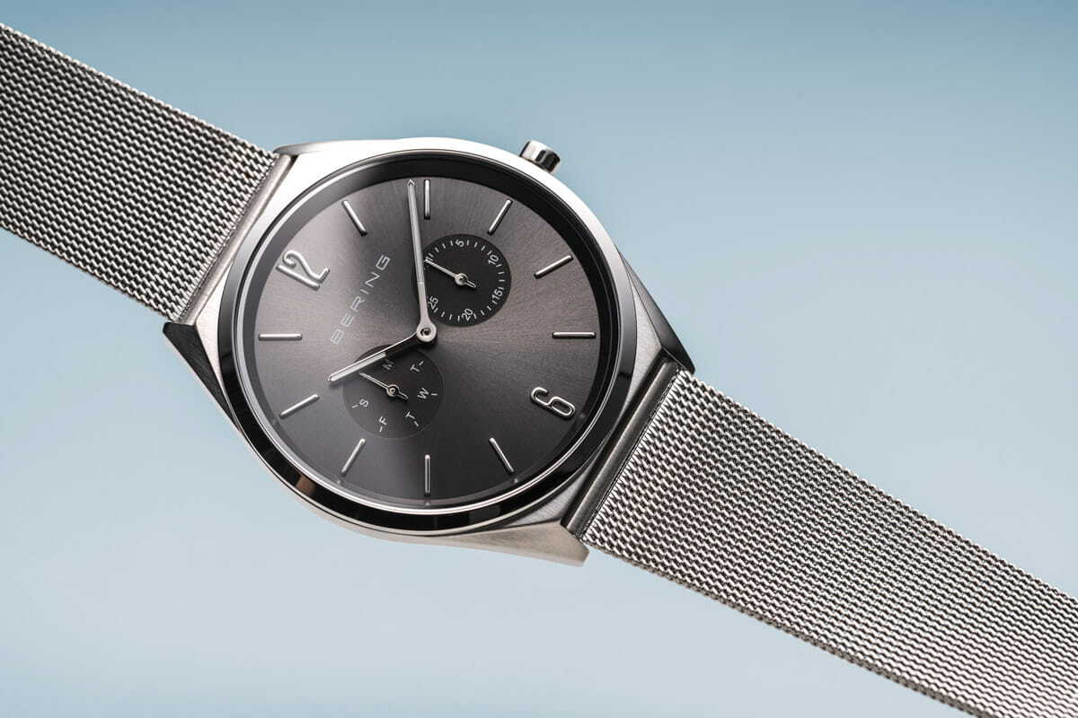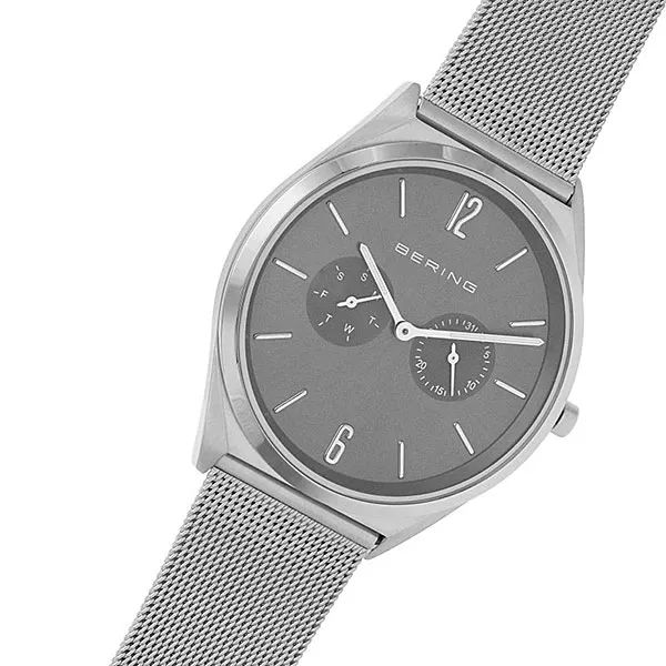 Кварцевые наручные часы с аналоговым отображением времени. Серия Classic Slim 7.0. Унисекс часы. Механизм SEIKO VX36E. Центральные часовая и минутная стрелки. Стрелки с люминесцентным покрытием, которое светится в темноте после непродолжительного воздействия света. Серый циферблат с часовыми метками в виде штрихов и двух арабских цифр 6 и 12. Стрелочные указатели даты и дня недели вынесены на отдельные малые циферблаты (дата в позиции 3 часов, день недели в позиции 9 часов). Круглый стальной полированный корпус. Диаметр корпуса 40 мм, толщина 7 мм. Устойчивое к возникновению мелких царапин плоское сапфировое стекло. Стальной браслет миланского плетения с серым IP покрытием. Регулируемая застёжка с предохранительной защёлкой. Ширина браслета 20 мм, длина браслета 175 мм. Водонепроницаемость WR30 (защита от брызг).