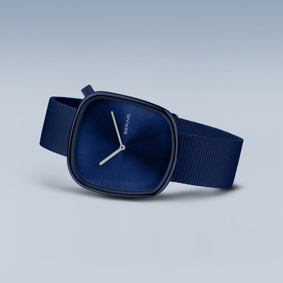 Кварцевые наручные часы с аналоговым отображением времени. Коллекция Ocean Pebble. Унисекс часы. Ремешки часов серии Ocean Pebble изготовлены из переработанного швейцарской компанией Tide Ocean морского пластика. Под девизом «Время заботиться» (“Time to Care”), который выгравирован на задней крышке часов, компания Bering подтверждает свою приверженность защите окружающей среды. Механизм Miyota 9T22. Центральные часовая и минутная стрелки серебристого цвета. Синий циферблат. Стальной полированный корпус с синим IP покрытием в форме океанической гальки. Размер корпуса 40 мм на 36 мм, толщина 6 мм. Рифлёная переводная головка в правой верхней части корпуса. Устойчивое к возникновению мелких царапин плоское сапфировое стекло. Синий текстильный ремешок из переработанного океанического пластика, классическая застёжка buckle. Ширина ремешка 18 мм, длина ремешка 185 мм. Мотив волны на задней крышке и на переводной головке часов символизирует приверженность бренда защите океанов. Водонепроницаемость WR30 (защита от брызг). Часы поставляются в специальной упаковке.