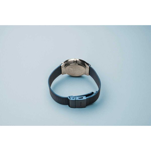 Мужские кварцевые наручные часы с аналоговым отображением времени. Серия Classic Collection. Механизм Miyota 6P29. Центральные часовая, минутная и секундная стрелки. Синий циферблат с часовыми метками в виде штрихов и четырёх арабских цифр 12, 3, 6 и 9. Стрелки с люминесцентным покрытием, которое светится в темноте после непродолжительного воздействия света. Стрелочные указатели времени суток, даты и дня недели вынесены на отдельные малые циферблаты (день недели в позиции 9 часов, дата в позиции 3 часов, суточное время в позиции 6 часов). Круглый стальной полированный корпус с серым IP покрытием. Диаметр корпуса 41 мм, толщина 8 мм. Устойчивое к возникновению мелких царапин плоское сапфировое стекло. Стальной браслет миланского плетения с синим IP покрытием, застежка клипса-бабочка. Ширина браслета 23 мм, длина браслета 185 мм. Водонепроницаемость WR30 (защита от брызг).
