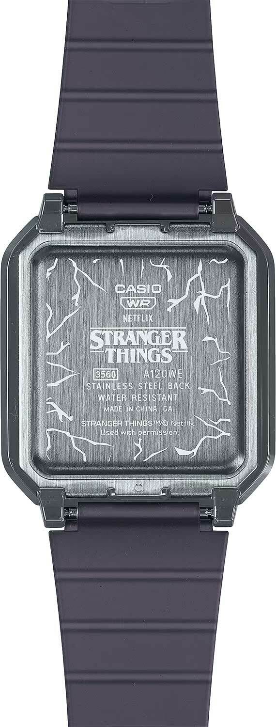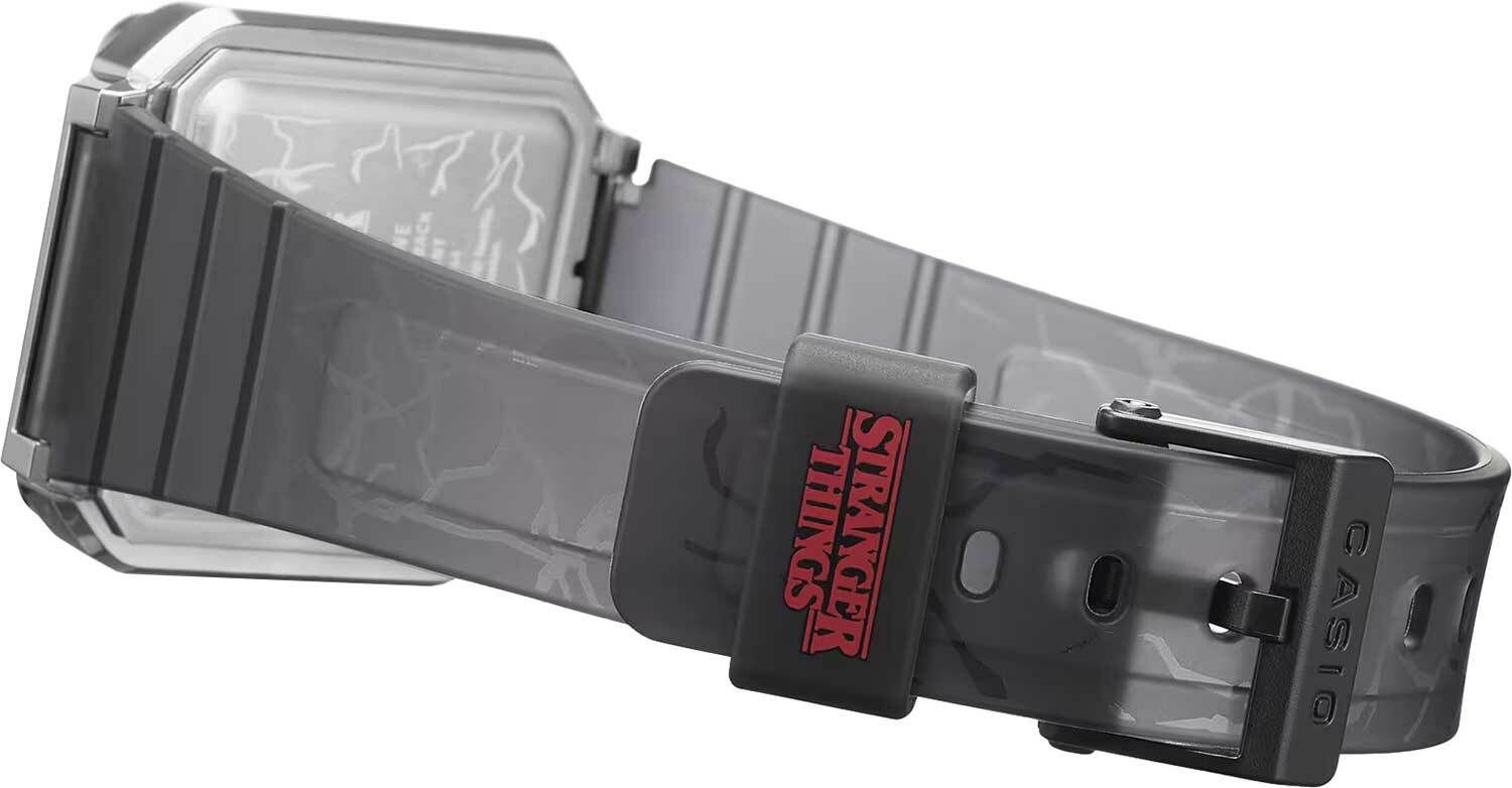 Кварцевые электронные наручные часы. Ограниченная серия для поклонников сериала “Stranger Things”. Те, кто смотрел сериал, сразу узнают на циферблате часов тот самый мир Upside Down [“изнанка”] — мрачная и ужасная параллельная реальность. По сюжету, один из главных героев открывает врата, которые связали наш мир с “изнанкой” и тем самым впускает потусторонних существ, одного из которых (демогоргон) можно увидеть над кнопками. Корпус, ремешок и задняя крышка “пронизаны” виноградными лозами и змеевидными отростками, намекая на тонкую грань двух миров. При активации подсветки проявляется надпись “Stranger Things” в перевернутом виде, еще раз напоминая о параллельной реальности. Светодиодная подсветка. Часы, минуты, секунды. 12/24х часовой формат времени. Ежедневный будильник, ежечасный сигнал. Секундомер 1/10 - прошедшее время, время прохождения круга и время окончания измеряются с точностью до десятой доли секунды. Пределы измерения достигают 1 часа. Автоматический календарь (28 дней на февраль). Корпус выполнен из полимерного пластика. Размеры корпуса 34 мм х 41 мм х 9 мм. Пластиковое стекло. Пластиковый ремещок. Водостойкость WR 30 (брызги). Срок службы батареи 3 года. Вес примерно 25 г. Часы поставляются в дизайнерском кейсе с оформлением в духе “Очень странных дел” ( “Stranger Things”).