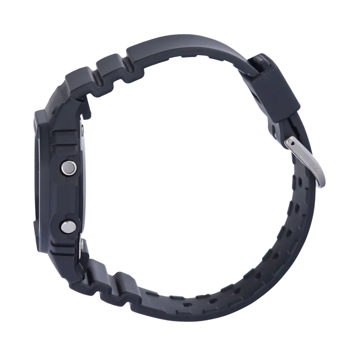 Электронные кварцевые наручные часы. Серия Casio G-Shock limited. Унисекс часы. Модель выпущена в сотрудничестве G-Shock и Itzy — популярной южнокорейской гёрл-группы жанра K-pop. Логотип группы Itzy украшает нижнюю часть циферблата часов, а на верхней нарисованы 5 звезд — по количеству участниц группы. Противоударный корпус защищает механизм часов от ударов и вибрации. Дисплей подсвечивается ярким светодиодом с функцией послесвечения. При включении подсветки на дисплее появляются 5 сердечек. Световая индикация сигнала (LED-индикатор) - светодиодная лампочка мигает при сигнале будильника, окончании таймера обратного отсчета или секундомера. 12-ти и 24-х часовой формат отображения времени. Секундомер с точностью показаний 1/100 секунды (первый час), 1 секунда (через 1 час) и временем измерения 24 часа. Режимы измерения: прошедшее время, промежуточное время, два финишных результата. Таймер обратного отсчета от 1 секунды до 24 часов с автоповтором. Многофункциональный будильник, ежечасный сигнал. Автоматический календарь до 2099 года. Прямоугольный корпус из биопластика (изготавливается из возобновляемых органических ресурсов) чёрного цвета. Размеры корпуса 40,5 мм на 45,7мм, толщина 11,9мм. Устойчивое к мелким механическим повреждениям минеральное стекло. Чёрный ремешок из биопластика (изготавливается из возобновляемых органических ресурсов) с классической застежкой Buckle. Батарейка рассчитана на 3 года. На стальной задней крышке часов выгравированы пять автографов участниц группы Itzy. Водонепроницаемость 200WR (плавание и ныряние без акваланга). Вес около 42 г. Часы поставляются в специальной упаковке, украшенной логотипами ITZY и G-SHOCK. На внешней коробке напечатаны автографы каждой из участниц группы .