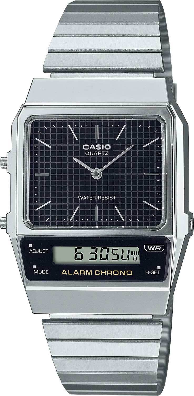 Удобные часы в ретро-стиле от Casio несомненно порадуют вас своей функциональностью. Collection. Унисекс часы. 12-ти и 24-х часовой формат времени. Секундомер с точностью показаний 1/100с и временем измерения 1ч. Одновременное отображение времени двух часовых поясов. Батарея рассчитана на 3 года. Водонепроницаемость в соответствии с DIN 8310/ISO 2281. Стальной браслет с регулируемой застежкой.