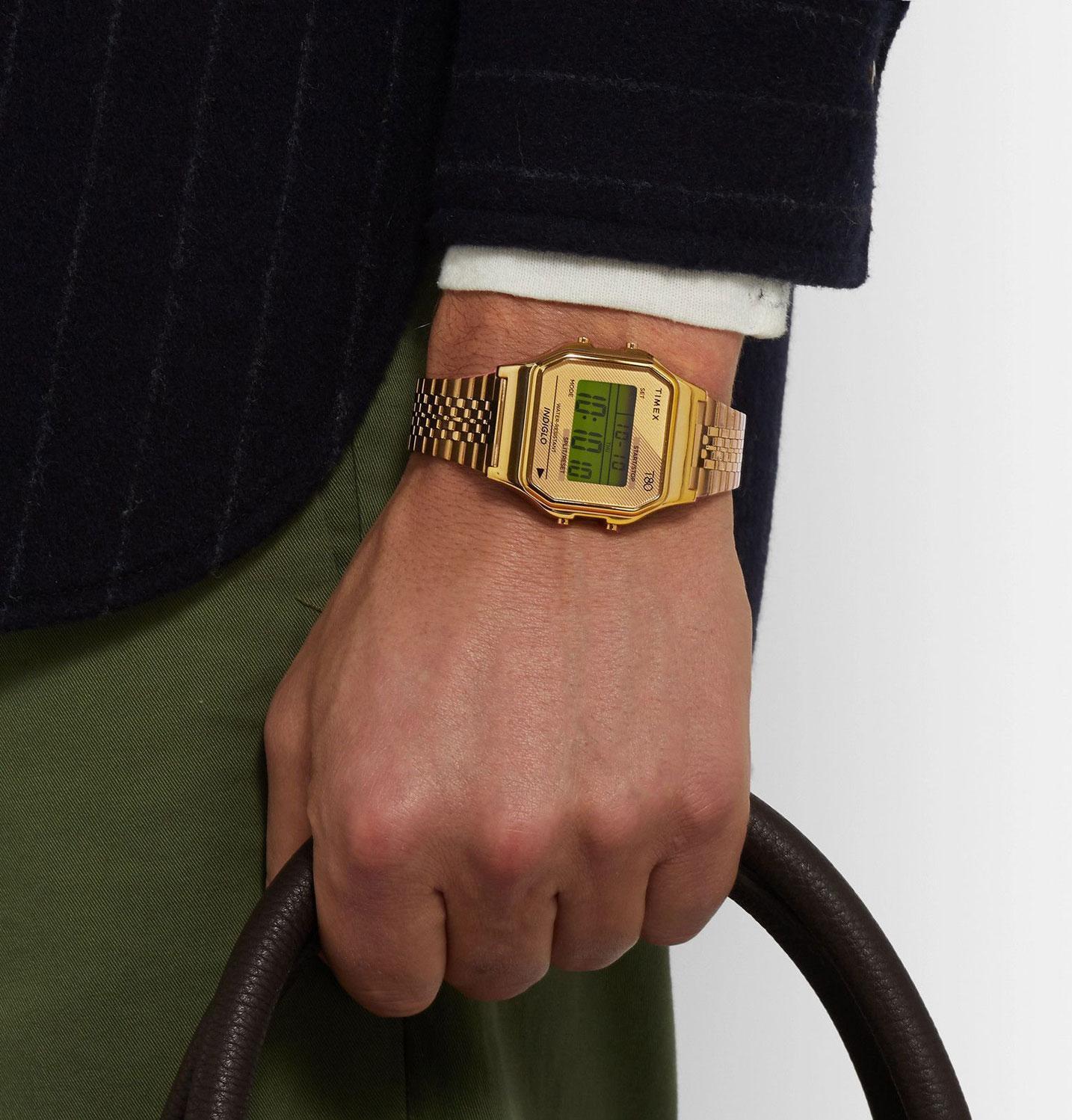 Пол: унисекс; Размер корпуса (мм): 34 мм; Корпус: полимер / сталь; Цвет корпуса: желтое золото; Ширина браслета (мм): 18 мм; Ремень/браслет: сталь; Цвет браслета: желтое золото; Цвет циферблата: дисплей; Водозащита: 3 ATM; Доп. характеристики: подсветка INDIGLO, будильник