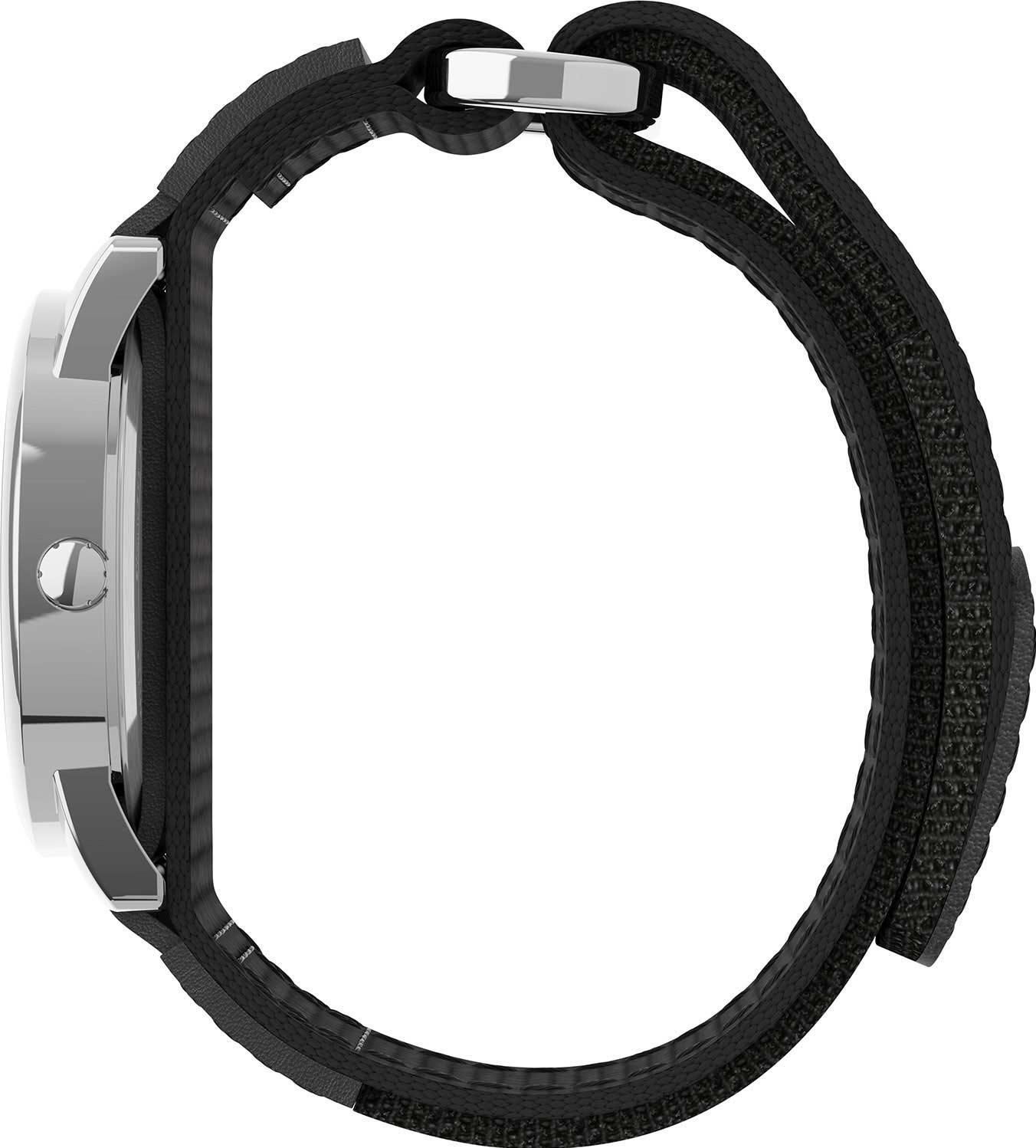 Кварцевые часы. Центральные часовая, минутная и секундная стрелки. Апертура даты в позиции 3 часов. Белый циферблат. Арабская индикация времени. Люминесцентная подсветка INDIGLO. Круглый корпус выполнен из латуни с PVD покрытием. Диаметр корпуса составляет 35 мм. Черный текстильный ремешок шириной 18 мм, застежка-липучка. Прочное минеральное стекло устойчивое к мелким механическим повреждениям. Водостойкость WR 30 (брызги).