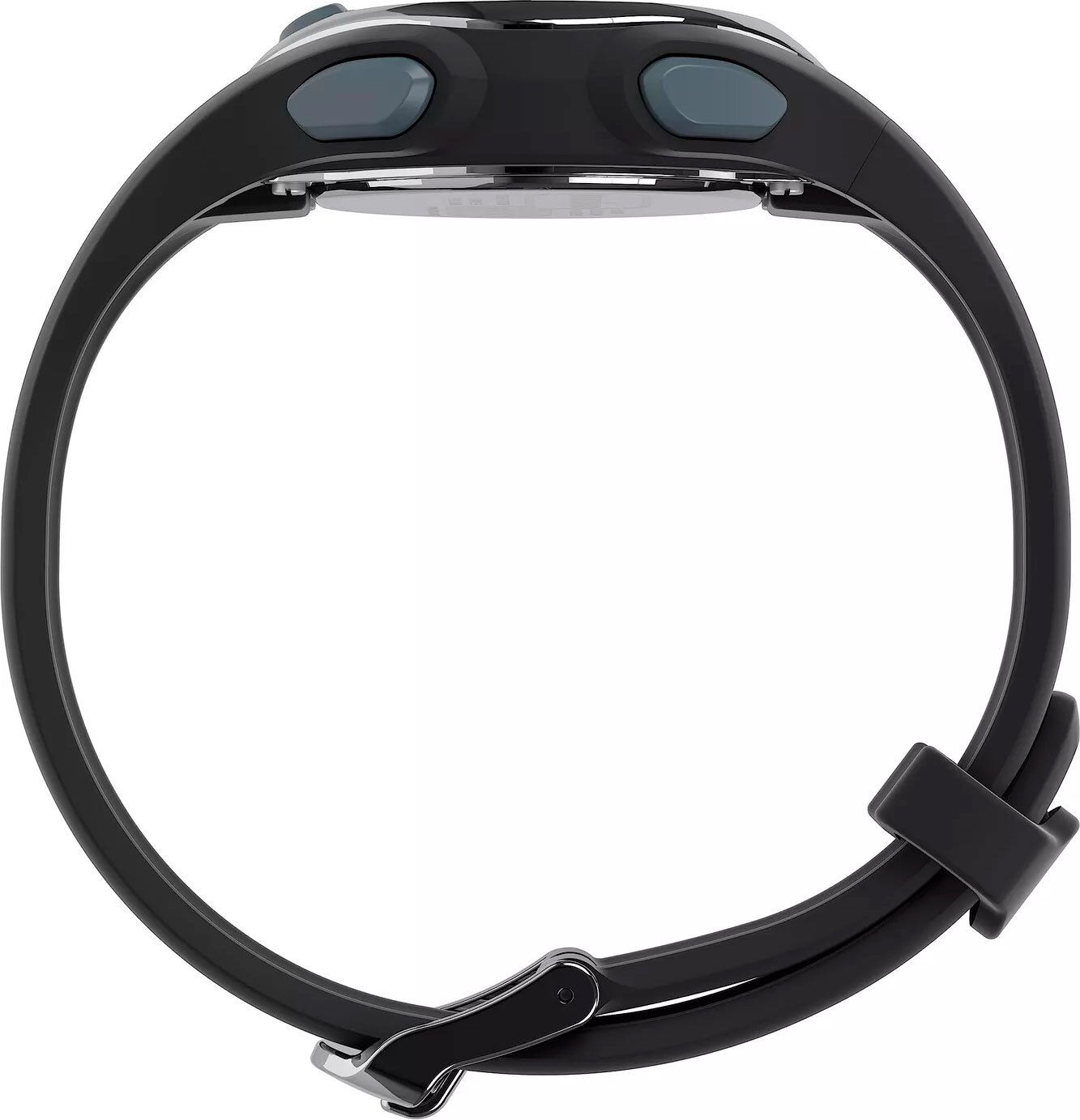 Кварцевые электронные наручные часы-хронограф с секундомером. Унисекс. Коллекция Ironman. Электронный SPLIT-хронограф с секундомером точностью 1/100с и памятью на 30 кругов. Таймер обратного отсчета. 12-ти и 24-х часовой формат отображения времени. Функция ежедневного будильника. Сегментный дисплей с фирменной подсветкой Indiglo -запатентованная технология компании Timex, представляющая собой электролюминесцентную панель, с помощью которой подсвечивается весь дисплей. Круглый пластиковый корпус чёрного цвета со стальной вставкой. Диаметр корпуса 34мм, толщина 9 мм. Чёрный пластиковый ремешок с классической застежкой buckle. Ширина ремешка 9 мм. Водозащита 50WR (мытьё рук, дождь).