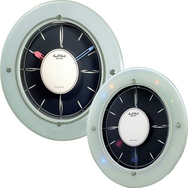 Настенные часы с мелодией, цветной подсветкой и интересным дизайном циферблата. При звучании мелодии по периметру циферблата мигают светодиоды. Качество звука CTS (Clarion Tone Sound). 12 СТS мелодий: 6 народных, 6 классических, 3 рождественских. Регулировка громкости звука. Автоматическое звука в ночное время суток, фотоэлемент. Вес: 1 кг.