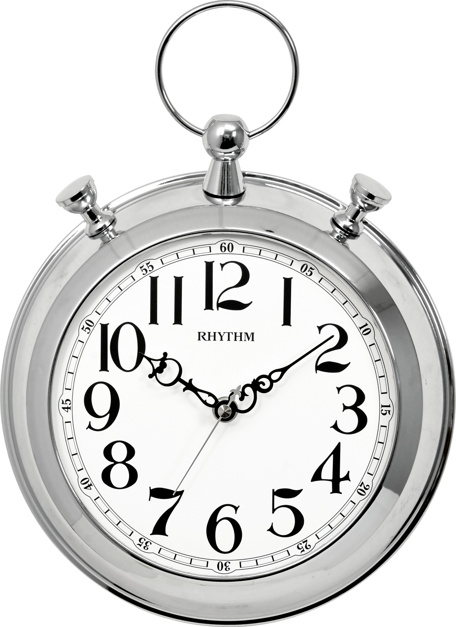Кварцевые настенные часы в виде секундомера Rhythm CMG571NR19. Данная модель работает от батарейки типа R6(AA) x 1 шт. (входит в комплект). Металлический корпус. Максимально допустимая погрешность точности хода +30/-30 секунд в месяц. Ход секундной стрелки — плавный (бесшумный).