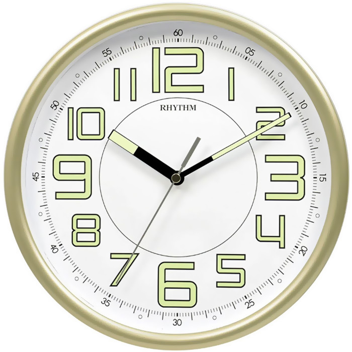 Кварцевые настенные часы Rhythm CCMG596NR18. Данная модель работает от батарейки типа R6(AA) x 1 шт. (входит в комплект). Максимально допустимая погрешность точности хода +30/-30 секунд в месяц. Светящийся в темноте цифры. Ход секундной стрелки — плавный (бесшумный).