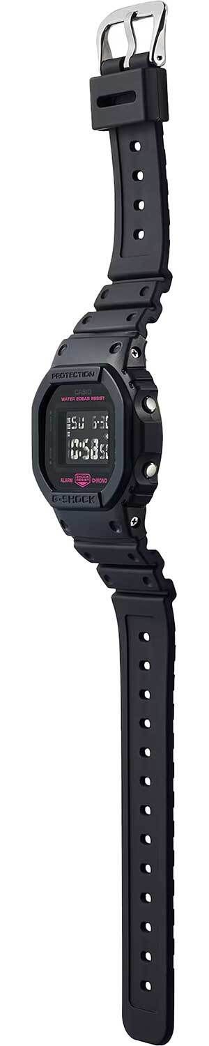 Электронные кварцевые часы. Коллекция G-Shock x Pink Ribbon. Унисекс. Модель создана совместно с фондом Pink Ribbon, поддерживающим программу борьбы против рака груди. Противоударный корпус защищает механизм часов от ударов и вибрации. Светодиодная подсветка с функцией послесвечения. Световая индикация сигнала (LED-индикатор) - светодиодная лампочка мигает при сигнале будильника, окончании таймера обратного отсчета или секундомера. Секундомер с точностью показаний 1/100 секунды (первый час), 1 секунда (через 1 час) и временем измерения 24 часа. Режимы измерения: прошедшее время, промежуточное время, два финишных результата. Таймер обратного отсчета от 1 секунды до 24 часов с автоповтором. 12-ти и 24-х часовой формат отображения времени. Многофункциональный будильник, ежедневный звуковой сигнал, индикация начала часа. Автоматический календарь до 2099 г. Прямоугольный корпус из биопластика (изготавливается из возобновляемых органических ресурсов) чёрного цвета. Размер корпуса 42,8 мм на 48,9 мм, толщина 13,4 мм. Черный ремешок из биопластика (изготавливается из возобновляемых органических ресурсов) с классической застежкой buckle. Минеральное стекло устойчивое к мелким механическим повреждениям. Батарейка рассчитана на 5 лет. Водостойкость WR 200 (плавание и ныряние без акваланга). Вес примерно 52 г.