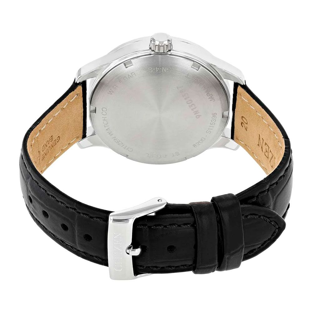 Мужские механические часы с автоподзаводом. Калибр механизма 8200. Центральные часовая, минутная и секундная стрелки. Апертура даты и дня недели в позиции 3 часов. Черный циферблат. Круглый корпус выполнен из нержавеющей стали. Диаметр корпуса составляет 40 мм, толщина 11,1 мм. Черный кожаный ремешок, стандартная застежка. Прочное минеральное стекло устойчивое к мелким механическим повреждениям. Водостойкость WR 50 (мытье рук, дождь). Вес примерно 62 г.
