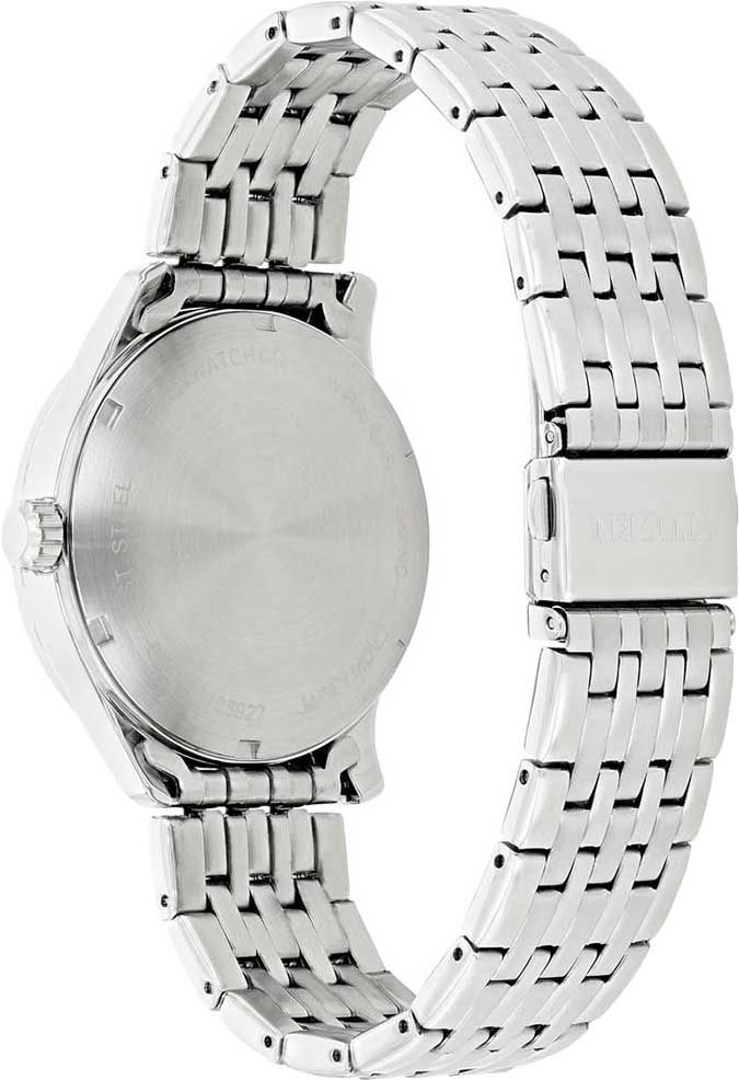 Мужские аналоговые механические часы с автоподзаводом. Коллекция Automatic. Основное достоинство часов с автоподзаводом состоит в том, что их не надо ежедневно заводить, т. к. в таких часах пружина заводного барабана получает энергию от вращающегося эксцентрика (ротора), который приходит в движение при любом изменении положения механизма. Если носить такие часы каждый день, подводить их вручную не нужно. Калибр механизма Citizen 8200. В механизме 21 камень, частота 21600 полуколебаний в час. Запас хода около 40 часов. Центральные часовая, минутная и секундная стрелки. Синий циферблат с часовыми метками в виде штрихов и римских цифр. Стрелки с люминесцентным покрытием, которое светится в темноте после непродолжительного воздействия света. Индикация даты и дня недели в позиции 3 часов. Круглый корпус из нержавеющей стали. Диаметр корпуса 40 мм, толщина 11,1 мм. Минеральное стекло устойчивое к мелким механическим повреждениям. Стальной браслет с тройной раскладывающейся застежкой. Водонепроницаемость 50WR (мытье рук, дождь). Вес около 128 г.