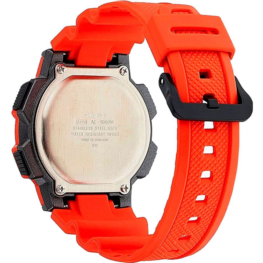 Мужские кварцевые электронные наручные часы. Коллекция Standard Digital. Циферблат подсвечивается светодиодом c функцией послесвечения. Секундомер с точностью показаний 1/100 секунды и временем измерения 24 ч. Режимы измерения: прошедшее время, промежуточное время, два финишных результата. Таймер обратного отсчета от 1c до 24ч. 5 независимых будильников, сигнал начала часа. Включение/выключение звука кнопок (Mute). Автоматический календарь до 2099 года. 12/24-х часовой формат отображения времени. Мировое время - 48 городов (31 часовой пояс), всемирное координированное время (UTC), установка летнего/стандартное времени, переключение между домашним и мировым временем. Режим WorldTime — показания текущего времени в 4-х зафиксированных городах. Круглый корпус из полимерного пластика красного цвета. Размеры корпуса 48,1 мм на 43,7 мм, толщина 13,7 мм. Пластиковое стекло. Красный пластиковый ремешок с классической застёжкой buckle. Батарея рассчитана на 10 лет. Водонепроницаемость 100 WR (часы подходят для плавания с маской, трубкой и обычного плавания). Вес около 40 г