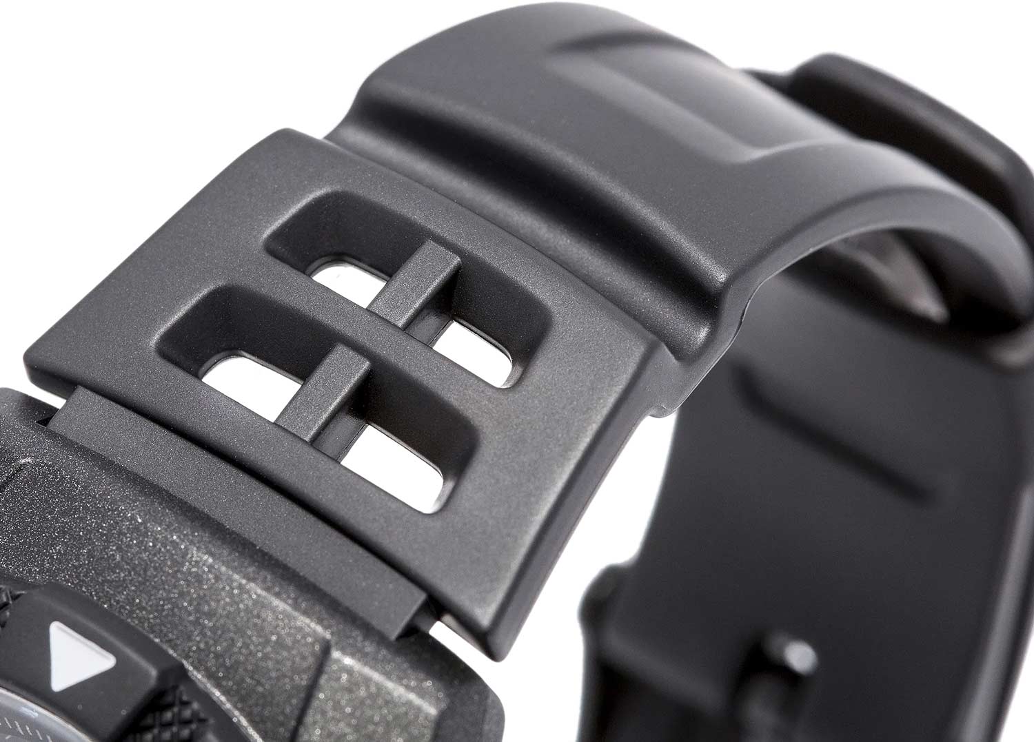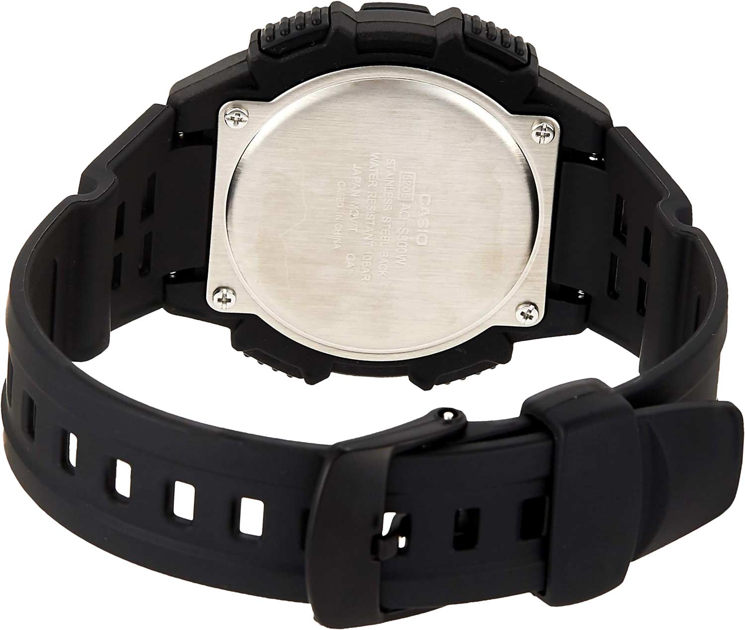 Мужские кварцевые аналого-цифровые наручные часы. Серия Casio Collection Analog-Digital Combination. Питание от солнечной энергии (технология Tough Solar) - источником питания служит светочувствительная панель и аккумулятор, заряжаемый при попадании солнечного света на циферблат часов. Индикатор низкого заряда батареи. Функция автоматического сохранения энергии. Время работы аккумулятора без подзарядки около 10 месяцев, при включенной функции сохранения энергии около 23 месяцев. Центральные часовая и минутная стрелки. Чёрный циферблат с часовыми метками в виде арабских цифр. Стрелки с люминесцентным покрытием, которое светится в темноте после непродолжительного воздействия света. Циферблат подсвечивается светодиодом. Секундомер с точностью показаний 1/100 секунды и временем измерения 1ч. Режимы измерения: отдельные отрезки времени, измерение с разделением, два финишных результата. Таймер обратного отсчета от 5с до 100мин с устанавливаемым количеством повторов от 1 до 10. 12-ти и 24-х часовой формат отображения времени. 5 ежедневных будильника, сигнал начала часа. Автоматический календарь до 2099 года, возможность отображения дня недели на шести языках. Функция мирового времени -31 часовая зона (48 городов), функция включения/отключения летнего времени. Чёрный круглый пластиковый корпус размером 47,6 мм на 42мм, толщиной 10,6мм. Пластиковое сферическое стекло. Чёрный пластиковый ремешок с классической застёжкой buckle. Водонепроницаемость 100WR (часы подходят для плавания с маской, трубкой и обычного плавания). Вес около 33 г.