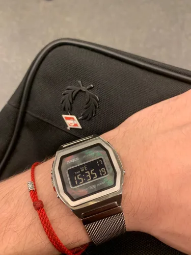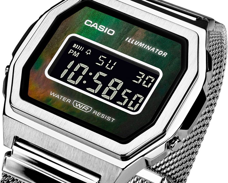 Электронные кварцевые наручные часы. Коллекция Casio Vintage. Унисекс часы. Секундомер с точностью показаний 1/100 секунды и временем измерения 1 час. Режимы измерения: прошедшее время, промежуточное время, два финишных результата. Ежедневный будильник, ежечасный сигнал. 12/24-часовой формат отображения времени. Светодиодная подсветка дисплея. Автоматический календарь с установкой 28 дней на февраль. Прямоугольный стальной корпус . Размеры корпуса 38 мм на 39,6мм, толщина 7,3мм. Устойчивое к мелким механическим повреждениям минеральное стекло. Стальной браслет с раскладывающейся застежкой. Срок службы батареи около 3 лет. Водонепроницаемость WR30 (защита от брызг). Вес около 82 г.