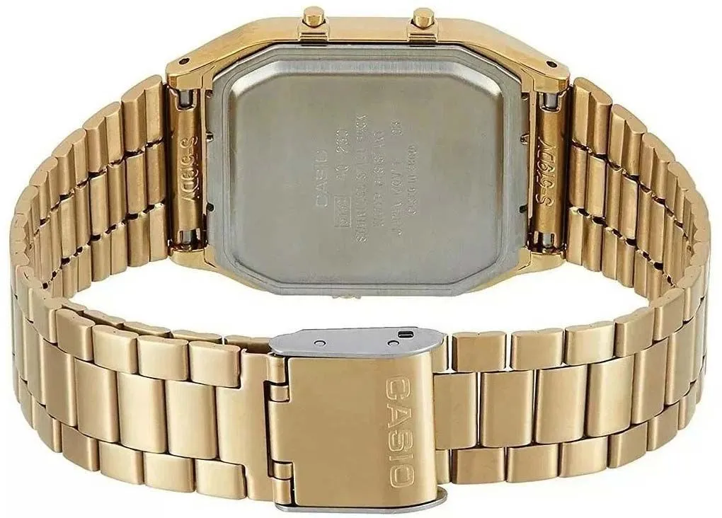 Casio AQ-230GA-9D - это часть легендарной серии Casio Vintage, которая славится своей долговечностью и безупречным внешним видом. Эти часы выделяются своим уникальным дизайном, который сочетает стальной браслет и стильный черный циферблат. Электронный дисплей добавляет удобства, позволяя легко считывать время в любое время дня и ночи.