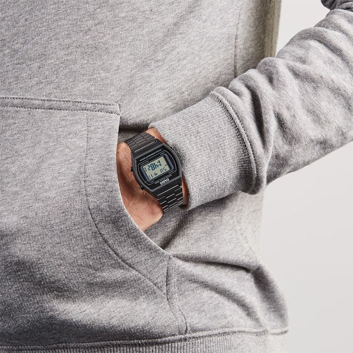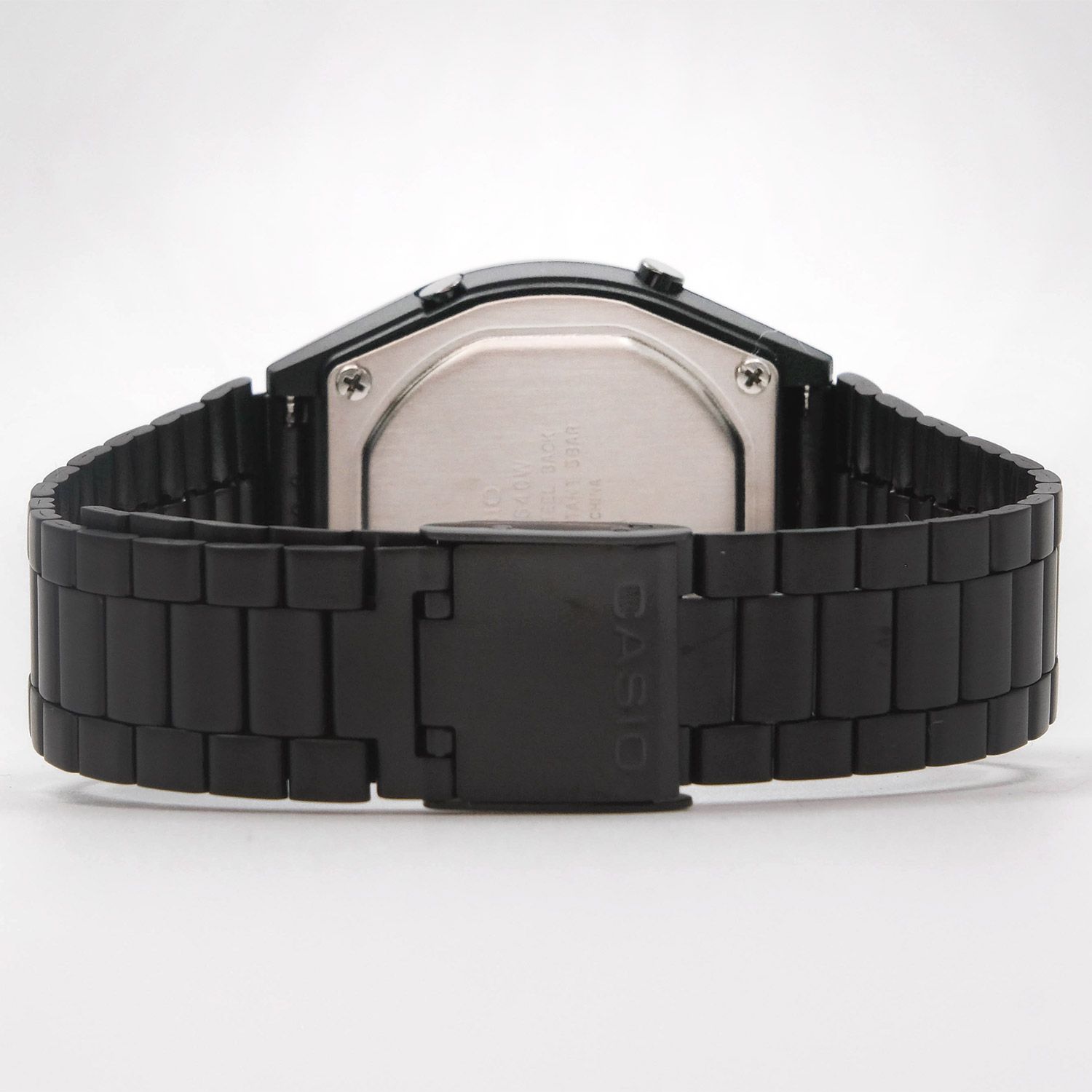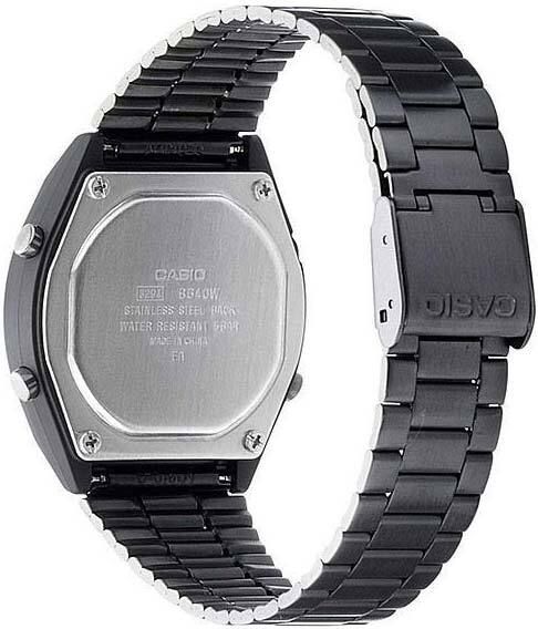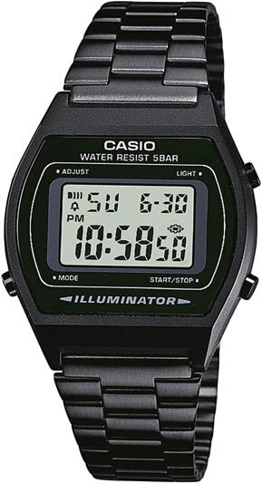 Мужские кварцевые электронные наручные часы. Коллекция Vintage. Циферблат подсвечивается светодиодом с функцией послесвечения. Световая индикация сигнала (LED-индикатор) - светодиодная лампочка мигает при сигнале будильника, окончании таймера обратного отсчета или секундомера. 12-ти и 24-х часовой формат отображения времени. Секундомер с точностью показаний 1/100 секунды (для первых 60 мин), 1 секунда (после 60 минут) и временем измерения 24 ч. Режимы измерения: прошедшее время, промежуточное время, два финишных результата. Таймер обратного отсчета от 1 с до 24ч с автоповтором. Будильник с многофункциональными звуковыми сигналами - ежедневный, ежемесячный, каждый день определенного месяца, на определенную дату. Автоматический календарь до 2099 года. Пластиковое стекло. Корпус из полимерного пластика чёрного цвета. Стальной браслет с IP покрытием чёрного цвета. Размер корпуса 38,9 мм на 35мм, толщина 9,4мм. Батарея рассчитана на 3 года. Водонепроницаемость 50WR (мытьё рук, дождь). Вес около 44 г.