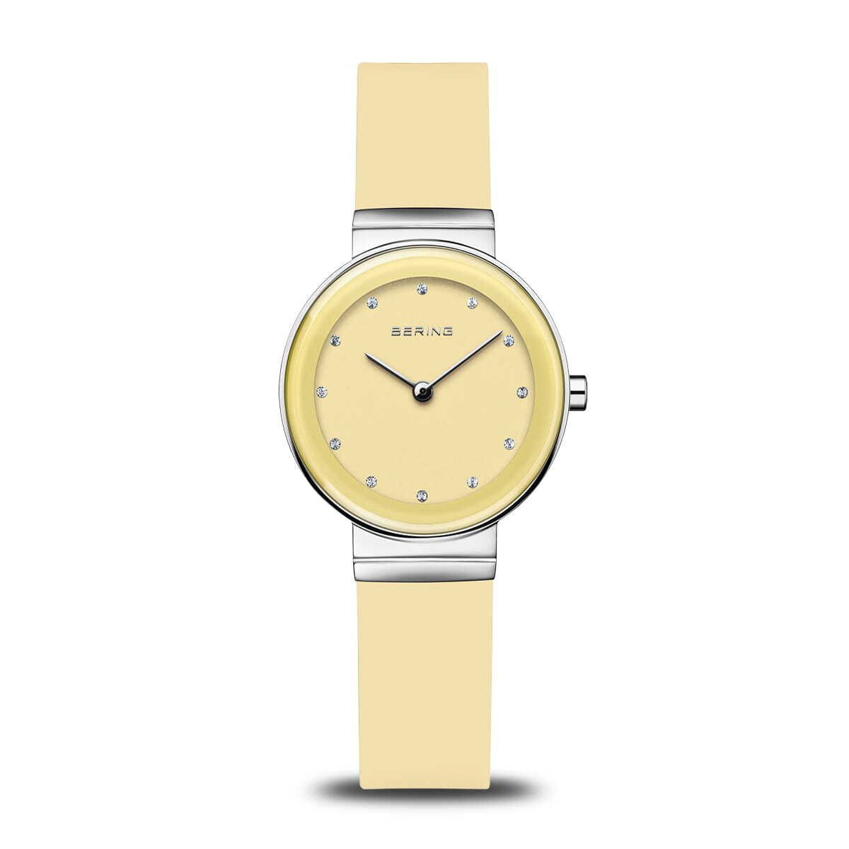 Женские кварцевые наручные часы с аналоговым отображением времени. Серия Classic Collection - воплощение классического стиля в современном минимализме. Центральные часовая и минутная стрелки серебристого цвета. Жёлтый циферблат с часовыми метками в виде кристаллов. Круглый стальной полированный корпус. Диаметр корпуса 29 мм, толщина 6 мм. Устойчивое к возникновению мелких царапин плоское сапфировое стекло. Бежевый пластиковый ремешок с классической застёжкой buckle. Ширина ремешка 14 мм, длина ремешка 175 мм. Водонепроницаемость WR30 (защита от брызг).