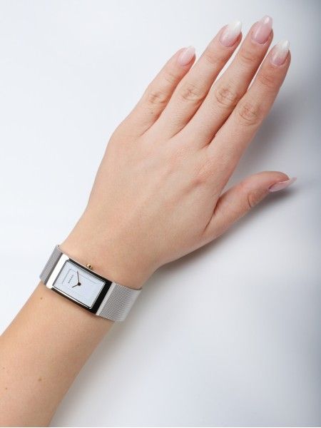 Женские кварцевые наручные часы с аналоговым отображением времени. Серия Classic Collection. Безупречный стиль в сочетании с современным минимализмом. Золотистая окантовка белого циферблата придаёт прямоугольному корпусу из нержавеющей стали элегантную глубину. Центральные часовая и минутная стрелки золотистого цвета. Белый циферблат с часовыми метками в виде штрихов. Прямоугольный стальной полированный корпус с частичным IP покрытием цвета розового золота. Размер корпуса 38 мм на 22 мм, толщина 7 мм. Устойчивое к возникновению мелких царапин изогнутое сапфировое стекло. Стальной браслет миланского плетения. Ширина браслета 22 мм, длина браслета 182 мм. Водонепроницаемость WR50 (мытьё рук, дождь).