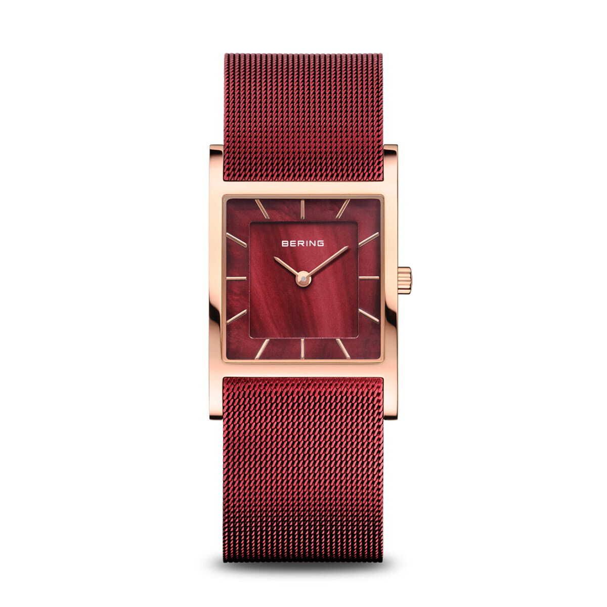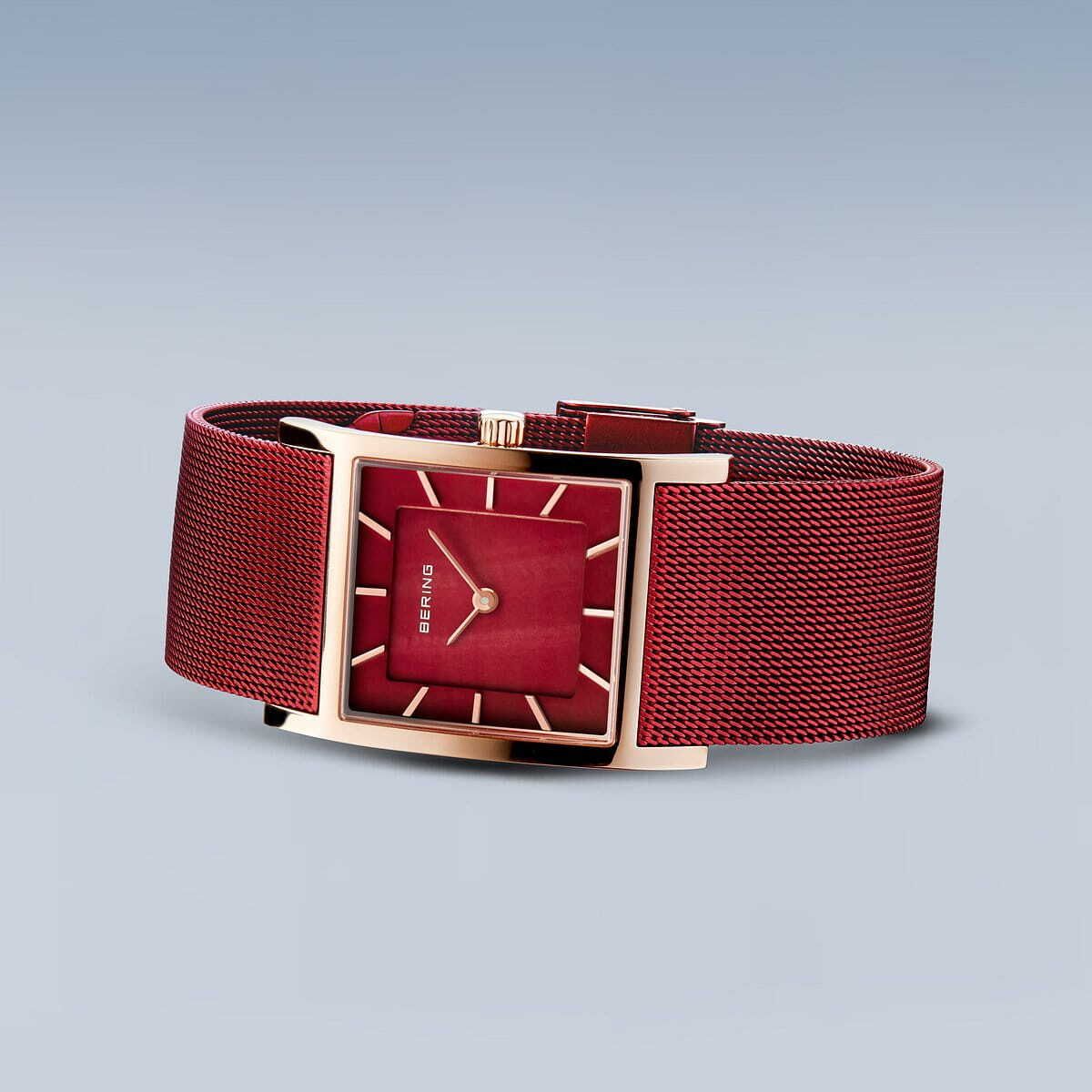 Женские аналоговые кварцевые наручные часы. Classic Collection.Механизм MIYOTA 9T22. Центральные часовая и минутная стрелки. Красный перламутровый циферблат с часовыми метками в виде штрихов. Прямоугольный стальной полированный корпус с покрытием цвета розового золота. Размер корпуса 38 мм на 26 мм, толщина 7 мм. Устойчивое к возникновению мелких царапин плоское сапфировое стекло. Стальной браслет миланского плетения с покрытием красного цвета. Ширина браслета 22 мм. Водозащита WR 50 (мытьё рук, дождь).