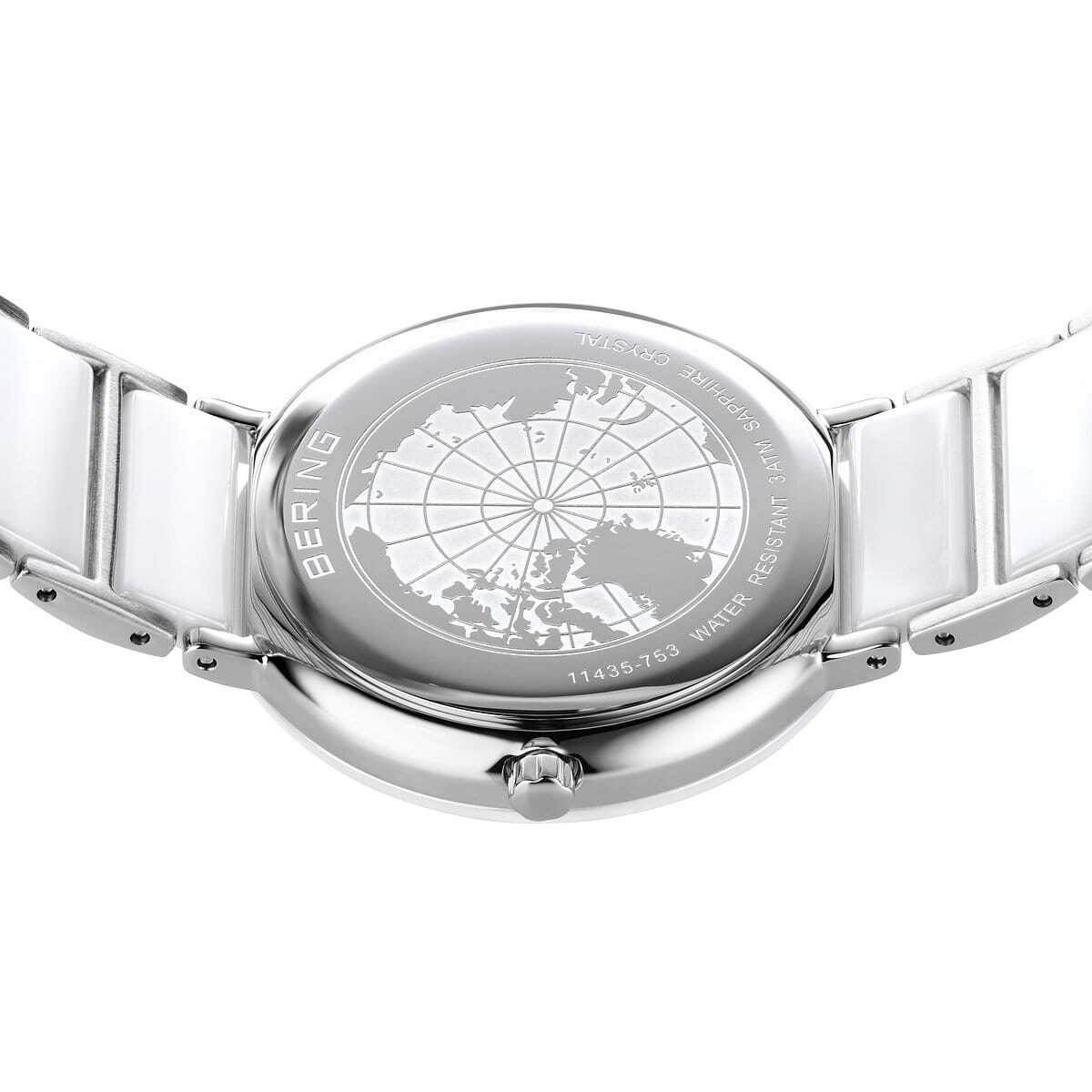 Женские аналоговые кварцевые наручные часы Ceramic collection. Механизм MIYOTA 9T22. Центральные часовая и минутная стрелки. Белый циферблат с гильошированием в виде солнечных лучей и с часовыми метками в виде штрихов и кристаллов. Круглый стальной корпус с белым керамическим безелем. Диаметр корпуса 35 мм, толщина 6 мм. Устойчивое к возникновению мелких царапин плоское сапфировое стекло. Стальной браслет с керамическими вставками белого цвета. Ширина браслета 18 мм, застёжка бабочка. Водонепроницаемость WR 30 (защита от брызг).