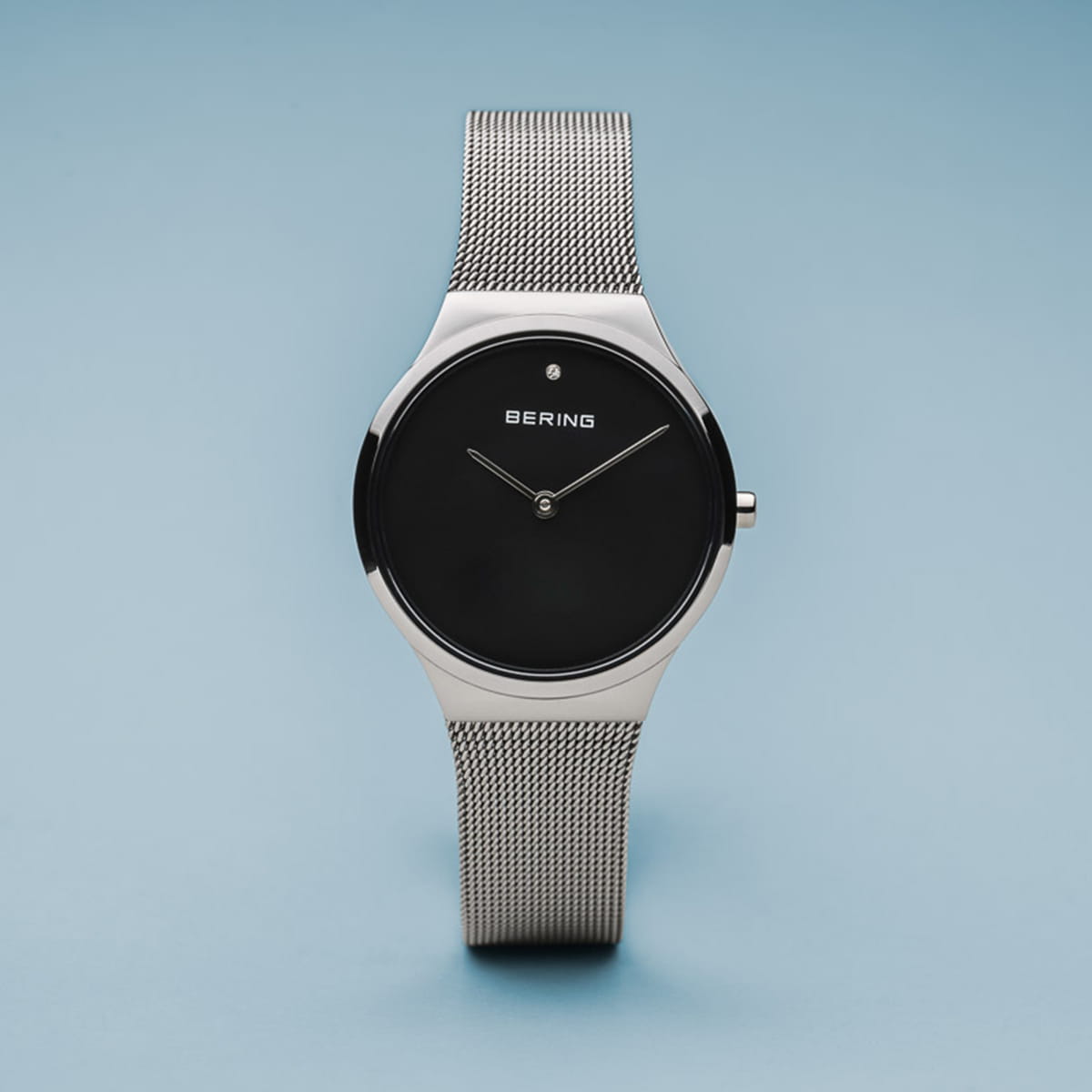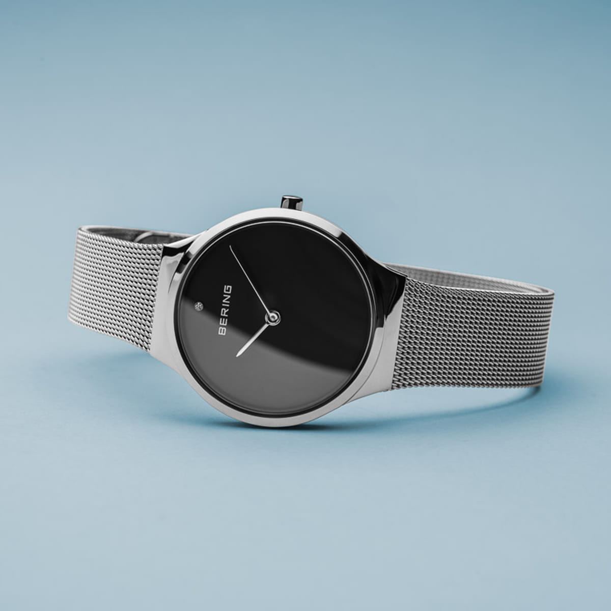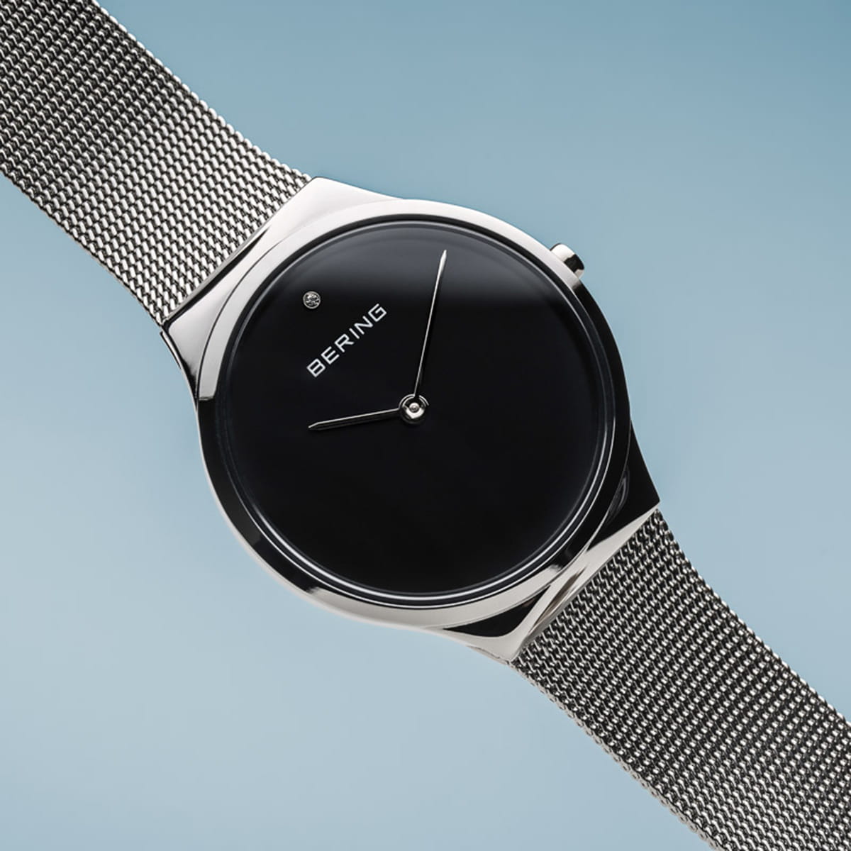Женские кварцевые наручные часы с аналоговым отображением времени. Серия Slim Classic Collection. Классические, лаконичные -безупречный стиль в сочетании с современным скандинавским минимализмом. Центральные часовая и минутная стрелки серебристого цвета. Чёрный циферблат украшен кристаллом в положении 12 часов. Ультратонкий круглый стальной полированный корпус диаметром 30 мм, толщиной 5 мм. Устойчивое к возникновению мелких царапин плоское сапфировое стекло. Стальной браслет миланского плетения. Раскладывающаяся застёжка с предохранительной защёлкой. Ширина браслета 15 мм, длина браслета 177 мм. Водонепроницаемость WR30 (защита от брызг).