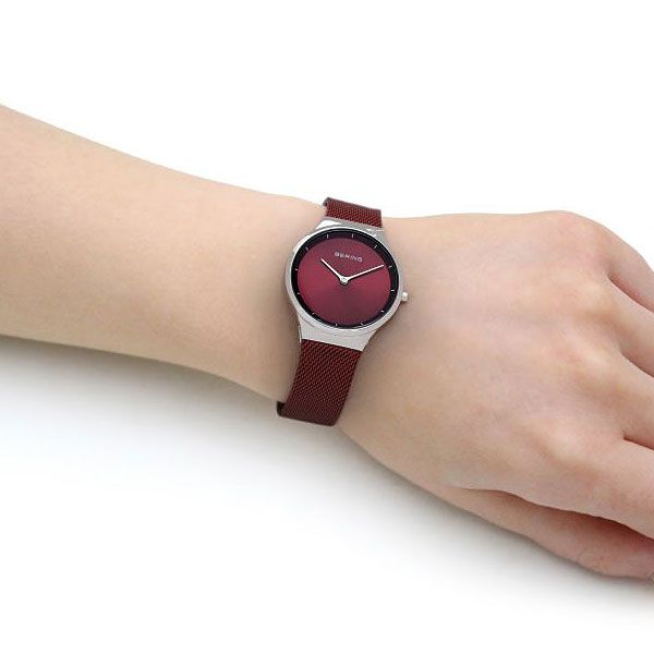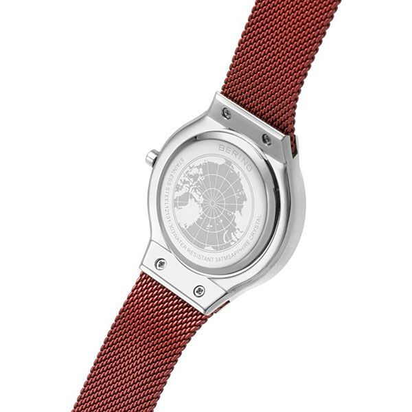 Женские кварцевые наручные часы с аналоговым отображением времени. Серия Classic Collection. Безупречный стиль в сочетании с современным минимализмом. Механизм MIYOTA GL22. Центральные часовая и минутная стрелки серебристого цвета. Красный циферблат с часовыми метками в виде штрихов выполнен по технологии Sunray (солнечные лучи). Круглый стальной полированный корпус диаметром 31 мм, толщиной 6 мм. Устойчивое к возникновению мелких царапин плоское сапфировое стекло. Стальной браслет миланского плетения с красным IP покрытием. Ширина браслета 17 мм, длина браслета 185 мм. Раскладывающаяся застёжка с предохранительной защёлкой. Водонепроницаемость WR30 (защита от брызг).