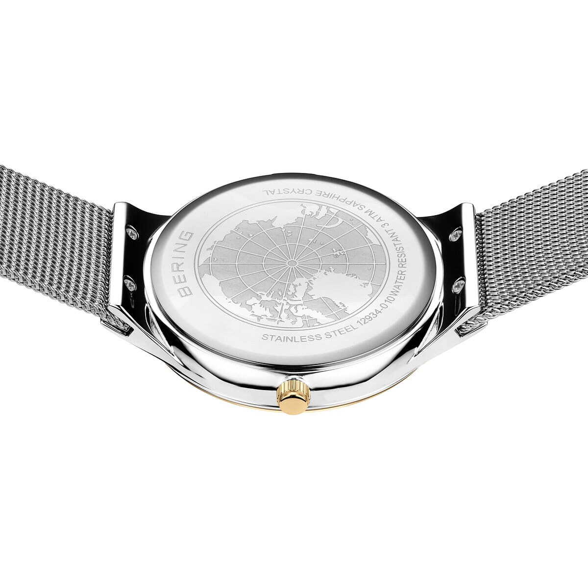 Элегантная, женственная модель BERING Classic 12934-010 сочетает в себе утонченные материалы и нотку роскоши. Овальный силуэт и изысканное сочетание серебра и золота делают ее неподвластным времени спутником для тех, кто ценит чистые линии и сдержанный блеск. Серебристый циферблат с матовой отделкой обрамлен сверкающими хрустальными циферблатами, которые мягко отражают свет. Золотистые стрелки идеально сочетаются с полированным золотым безелем, придавая минималистичному дизайну теплый и элегантный акцент. Тонкий корпус из нержавеющей стали высотой всего 7 мм удобно сидит на запястье. Часы дополнены серебряным ремешком миланского производства тонкой работы, который легко надевается и застегивается на практичную раскладывающуюся застежку. Модель BERING 12934-010, оснащенная плоским сапфировым стеклом, устойчивым к царапинам, надежным кварцевым механизмом и водонепроницаемостью 3 атм, олицетворяет собой непреходящую, сдержанную красоту.