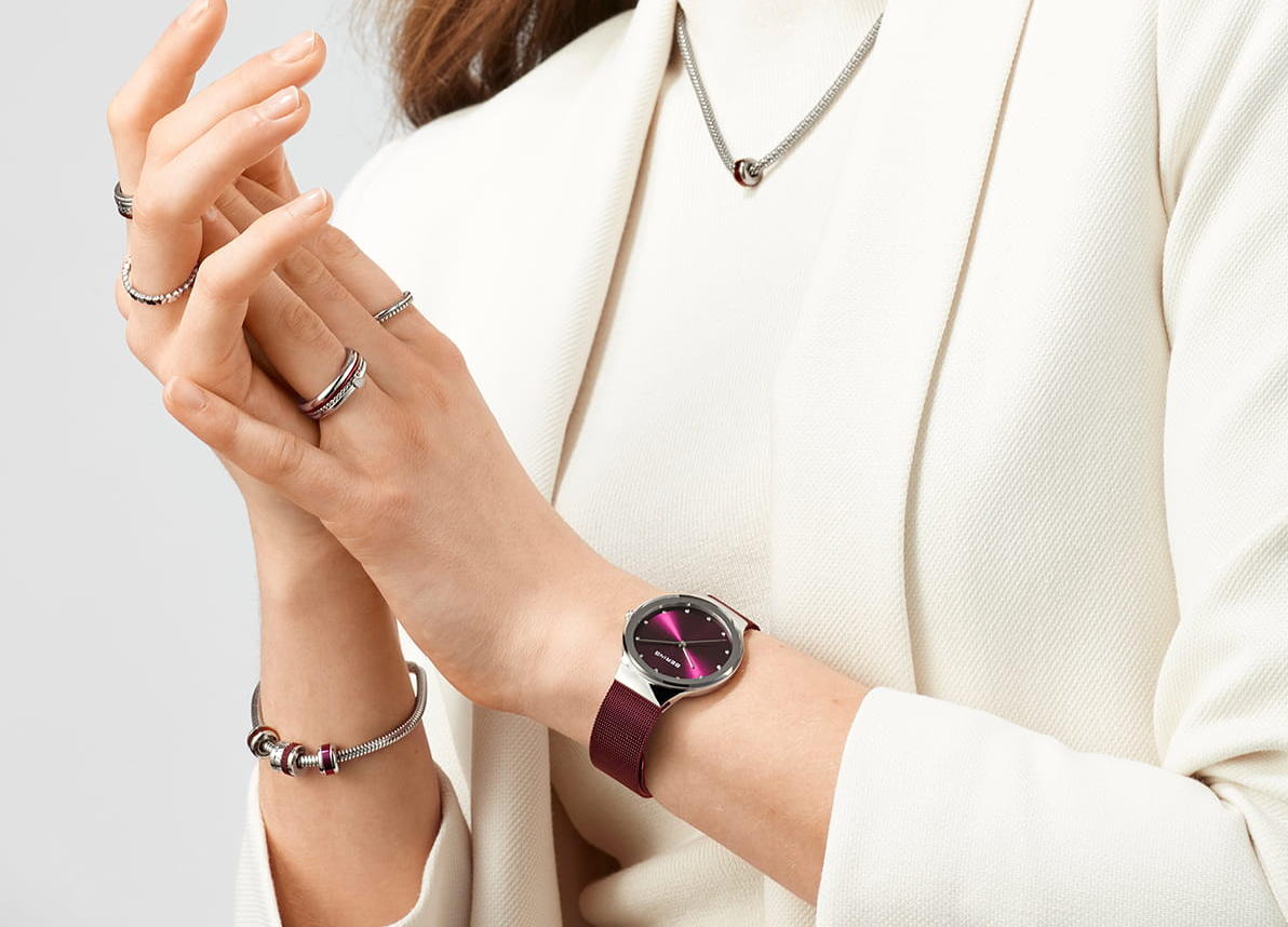 Женские кварцевые наручные часы с аналоговым отображением времени. Серия Classic Collection. Элегантные, женственные и лаконичные часы сочетают в себе минималистичный дизайн и смелые цветовые акценты. Насыщенный фиолетовый циферблат, переливающийся в зависимости от освещения, изысканно дополняют изящные сверкающие кристаллы вместо традиционных часовых меток. Механизм MIYOTA 1L32. Центральные часовая, минутная и секундная стрелки серебристого цвета. Фиолетовый циферблат с часовыми метками в виде кристаллов. Круглый стальной полированный корпус диаметром 34 мм, толщиной 7 мм. Устойчивое к возникновению мелких царапин плоское сапфировое стекло. Стальной браслет миланского плетения с фиолетовым IP покрытием. Застёжка с предохранительной защёлкой. Ширина браслета 17 мм, длина браслета 165 мм. Водонепроницаемость WR30 (защита от брызг).